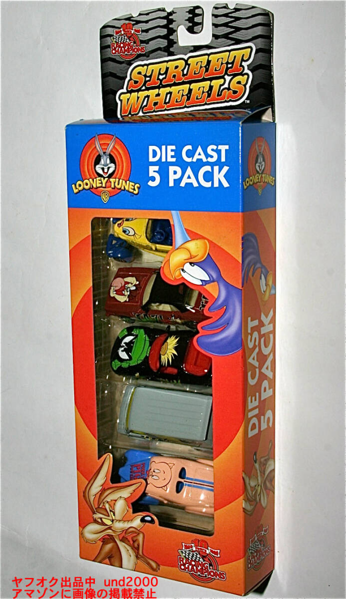 Racing Champions、Street Wheels、Looney Tunes Die Cast 5 Pack。レーシングチャンピオン社製、ルーニー・テューンズのキャラクター(バックス・バニー、タズマニアン・デビル、マービン・ザ・マーシャン、ポーキーピッグ、トゥイーティー )のイラストがプリントされたダイキャスト製、3インチ・ミニカー5台セット。1997 Plymouth Prowler、1970 Barracuda、1996 Dodge Viper、1975 Chevy Van、1941 Willys。1999年ごろのモデル。未使用、未展示品です。箱に若干のスレがあります。。量産品のクオリティに付いては極端に状態の悪いものは別記しますが、ノークレームでお願い致します。お支払いはヤフーかんたん決済のみ。東京発、ゆうパック持込60サイズ(東京700円 - 沖縄1330円)、または定形外郵便(追跡番号、保険無し)660円での発送となります。(上記の送料はこの出品物のみの料金となります。複数落札、同梱包発送の場合、重さ、サイズが変わりますので送料が変わります。)3日以内のご連絡、かんたん決済の支払期限内(通常5日、支払方法により異なります)のお支払い厳守でお願いします。入札される前に「自己紹介」もあわせてお読みください。 検索用 レーシング・チャンピオン レーシング・チャンピオンズ ワード ワーナー・ブラザース Warner Brothers Looney Tunes Bugs Bunny Tweety Porky Pig Marvin the Martian Tasmanian Devil TAZ プリムス プロウラー バラクーダ バイパー シェビーバン ウィリス