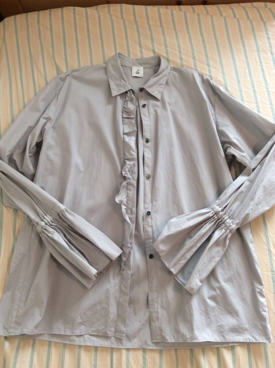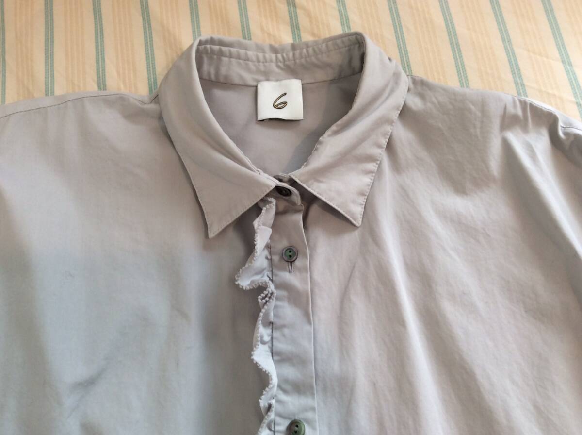 ユナイテッドアローズで約25,000円ほどで購入しました「6ROKUロク」のブラウスです。サイズはフリーでおおよそ9号、(身幅約56㎝、着丈約73㎝、袖丈約65㎝)、お色は9号、1度着用しましたがクリーニング済み、大切に保管しておりましたのでとても綺麗な状態、日本製のコットン100%、上質なお素材としっかりした縫製です。モードなデザインのロクですが、このブラウスは胸元のレースデザインが女性らしくガーリーな雰囲気もありながら、淡い上品なグレーがスッキリと、かつ長めのお袖と袖口にゴムの入ったシャーリングのデザインがとても素敵で洗練された雰囲気です。パンツやデニムはもちろん、スカートでガーリーに、スニーカーでカジュアルにとオフィスからレジャー、デートまでさまざまにお召しいただけます。さっぱりした肌触りの良いコットンはこれからの季節の冷房対策にもいかがでしょうか。同じく出品ておりますHエイチのスカート(https://auctions.yahoo.co.jp/jp/auction/r1175225141)にもぴったりです。