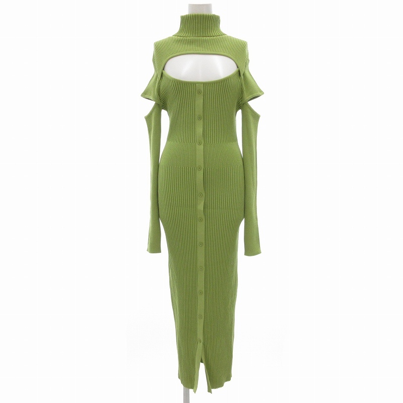 リエンダ rienda 美品 オープンデザインタイトニットOP ワンピース マキシ ロング F ライム /UO レディース
