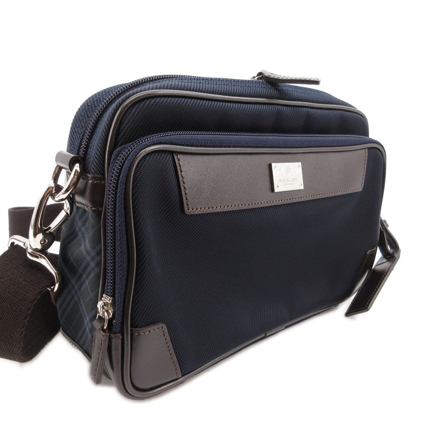 ・送料無料 超美品 ブラックレーベルクレストブリッジ BLACK LABEL CRESTBRIDGE ショルダーバッグ ポシェット セカンドバッグ クラッチバッグ 2WAY 鞄 斜め掛け チェック柄 日本製 紺 ネイビー系 メンズ