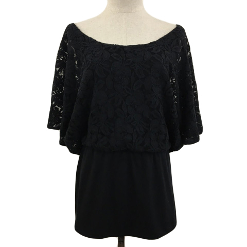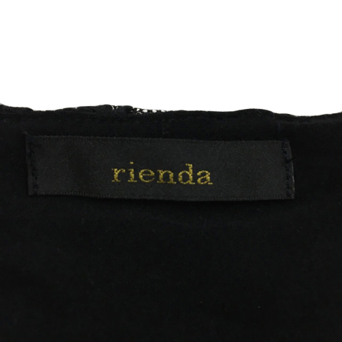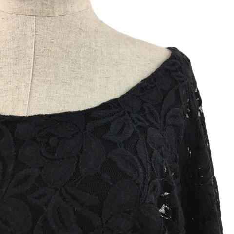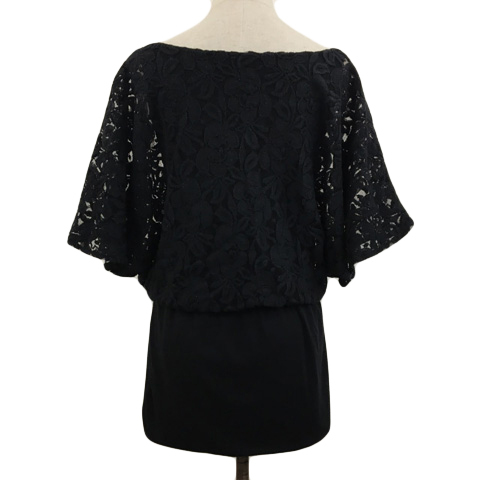 リエンダ カットソー チュニック プルオーバー ラウンドネック レース ウエストゴム 切替 ドッキング 五分袖 FREE 黒 ブラック レディース