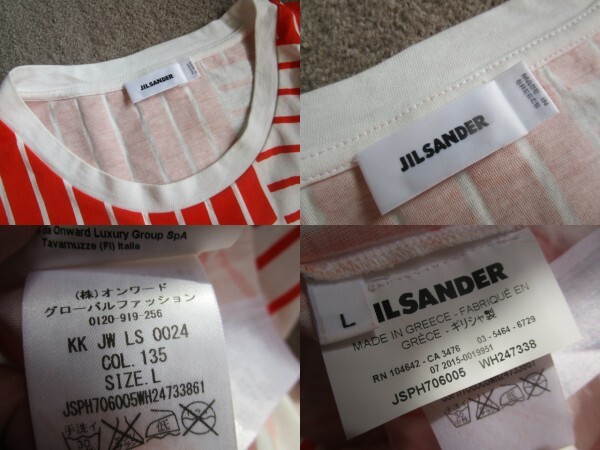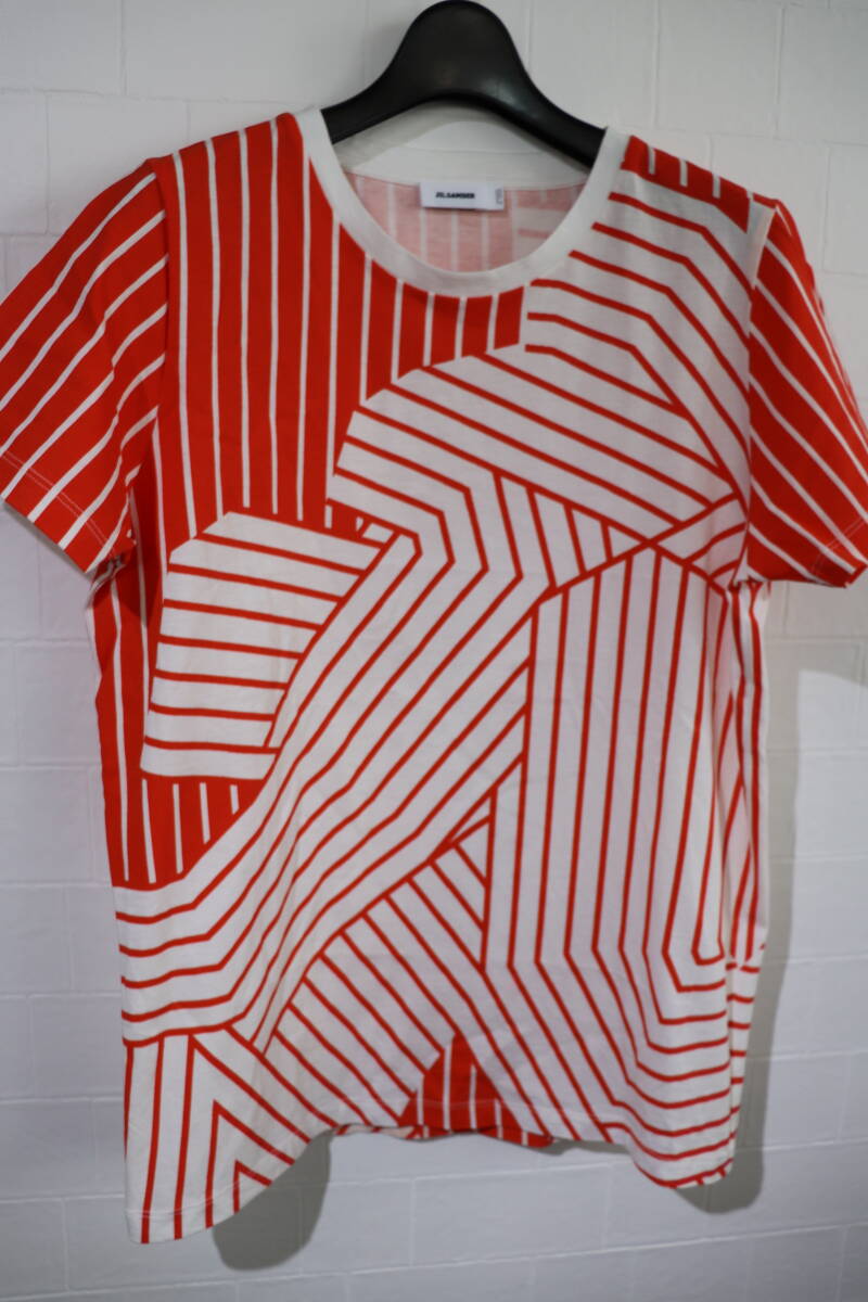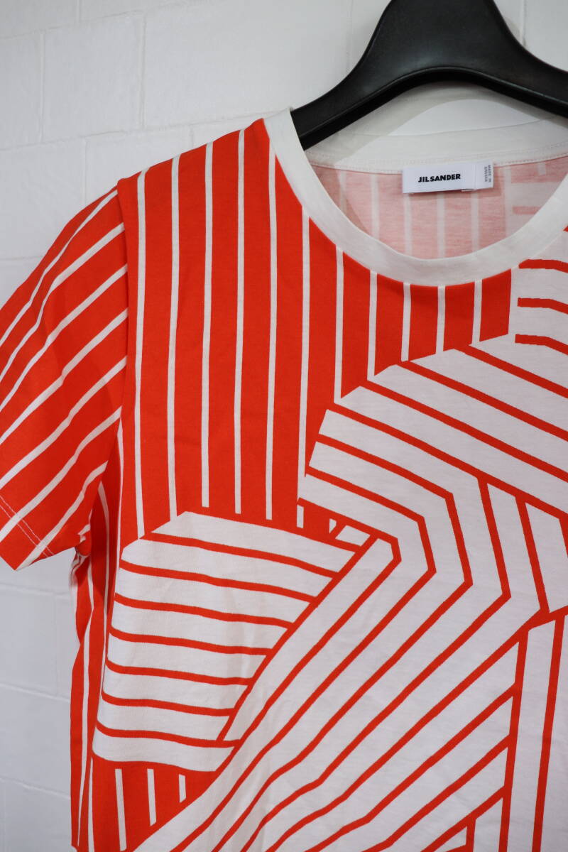 即決 JIL SANDER ジルサンダー アートプリント総柄 Tシャツ レディース L オレンジ×ホワイト KK JW LS 0024 ギリシャ製
