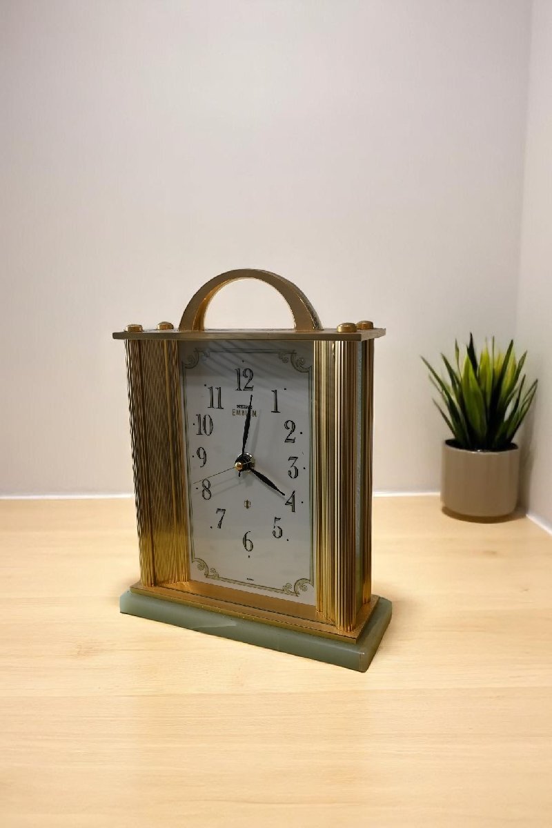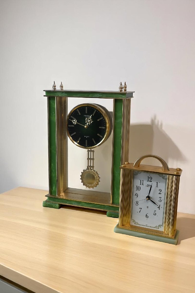 ○SEIKO 綺麗な天然石 四角型の置時計 2点セット 金色 レトロモダン 昭和 ヴィンテージ 古道具のgplus広島 2506i