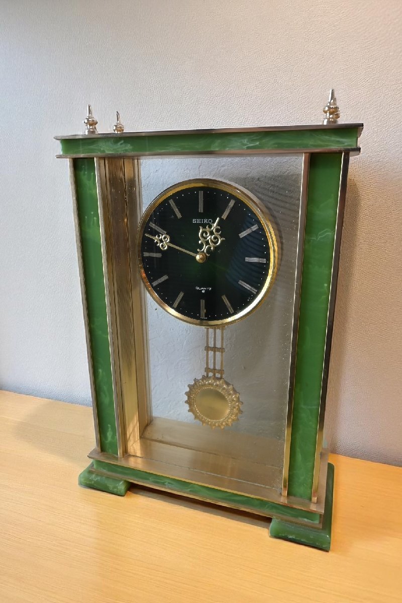 title:SEIKO 綺麗な天然石 四角型の置時計 2点セット 金色 レトロモダン 昭和 アールデコ 古道具のgplus広島 2506i