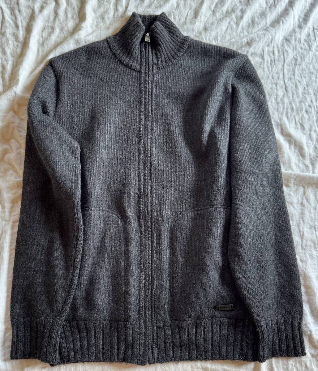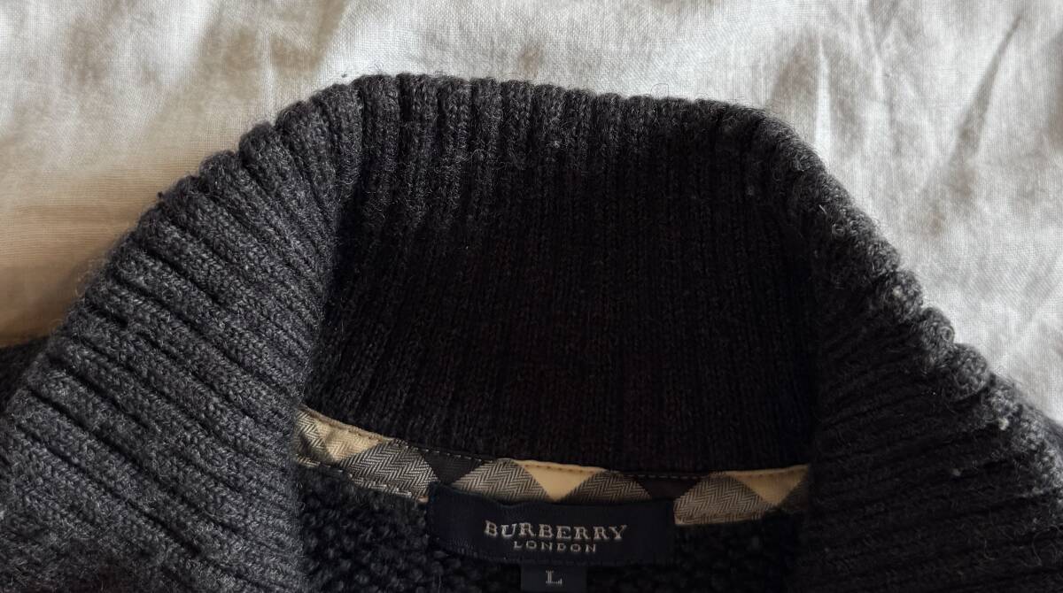 バーバリーロンドン ニット セーター ジップアップ グレイ L 厚手 高級タイプ ウール100