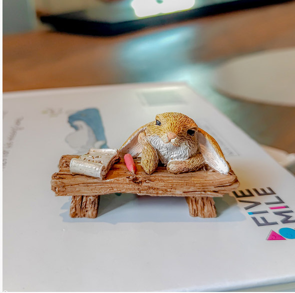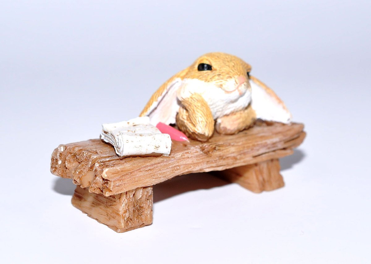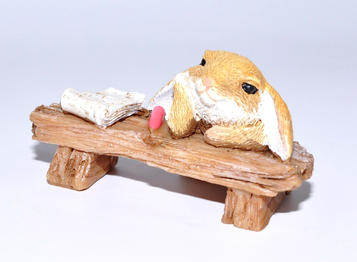 セール!即納!ベンチで空想にふけるウサギ彫像 幅約6cmバニー置物彫刻 贈り物(輸入品)