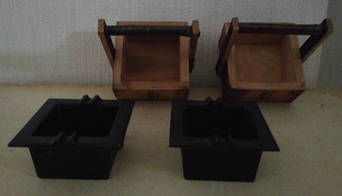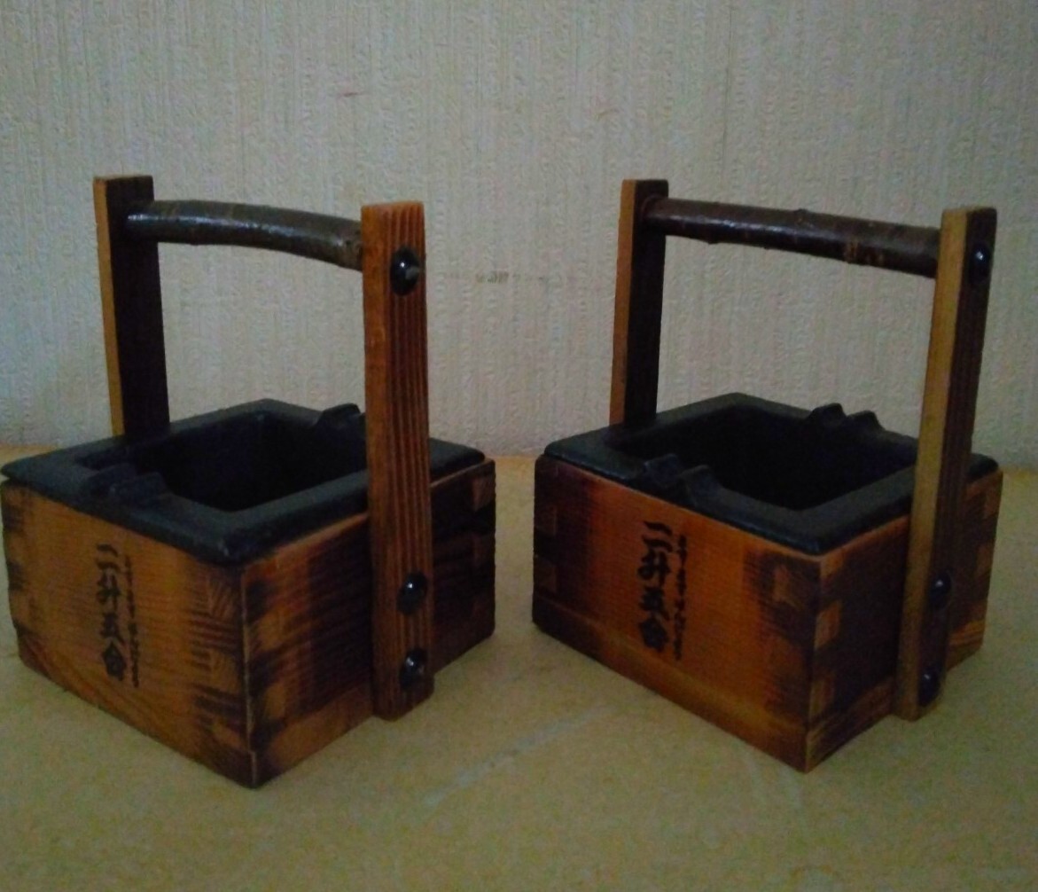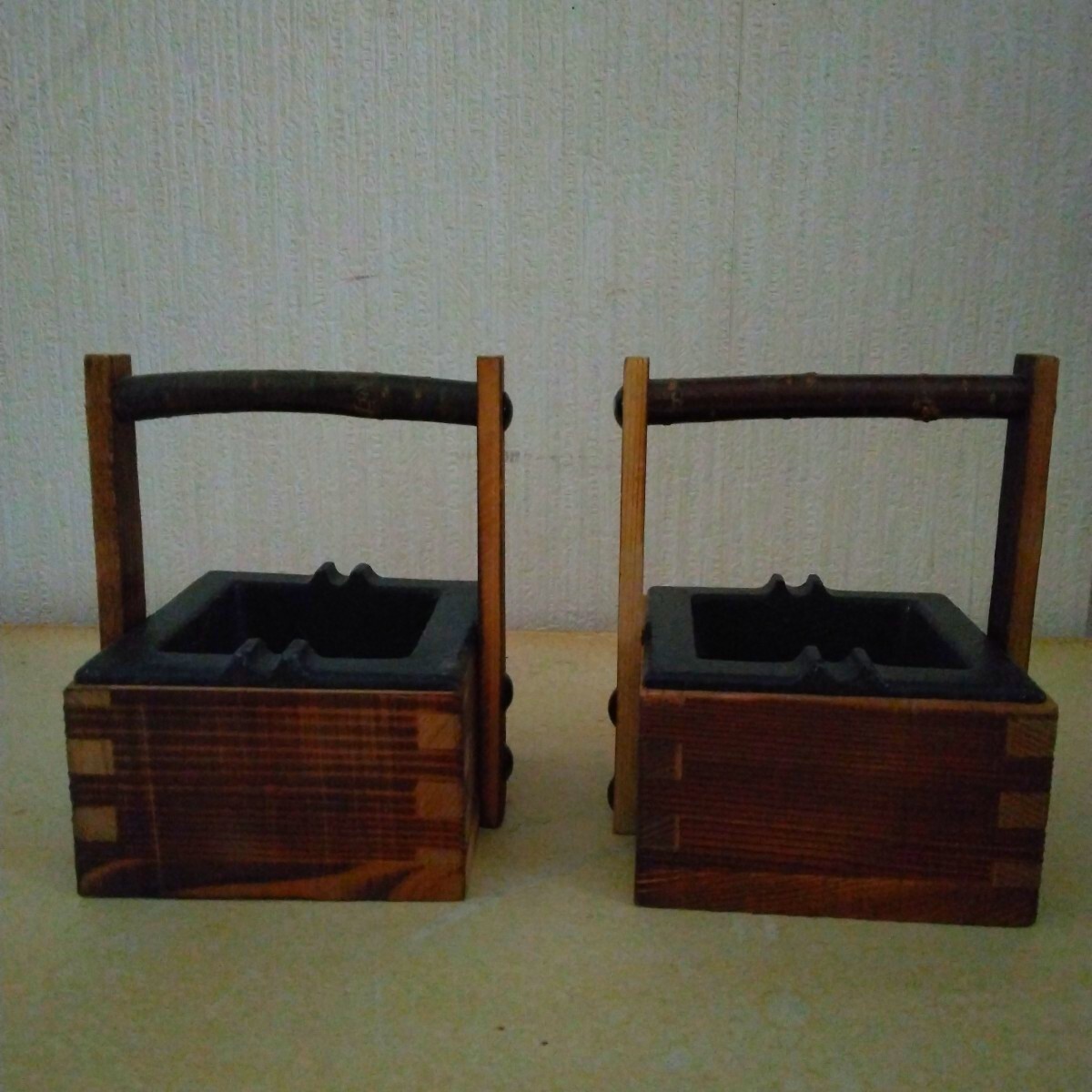 升の中に鉄の灰皿が入っています。持ち手は桜かと思いますが、なお画像にてご確認下さい。
