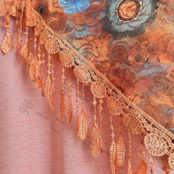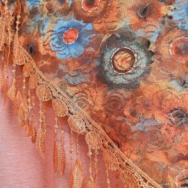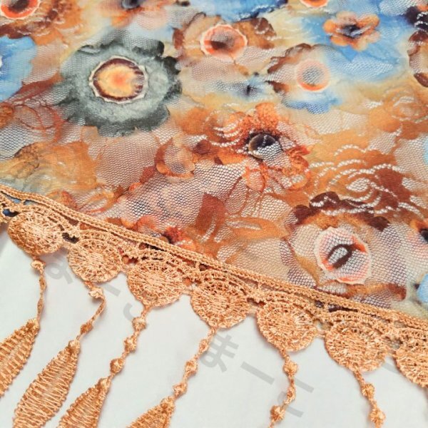 ベリーダンス用花柄フリンジヒップスカーフ ブラウン