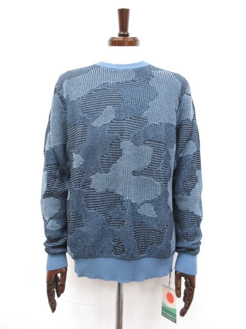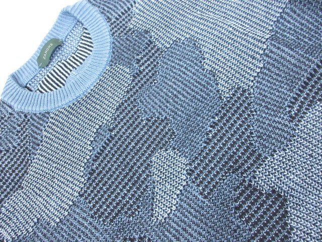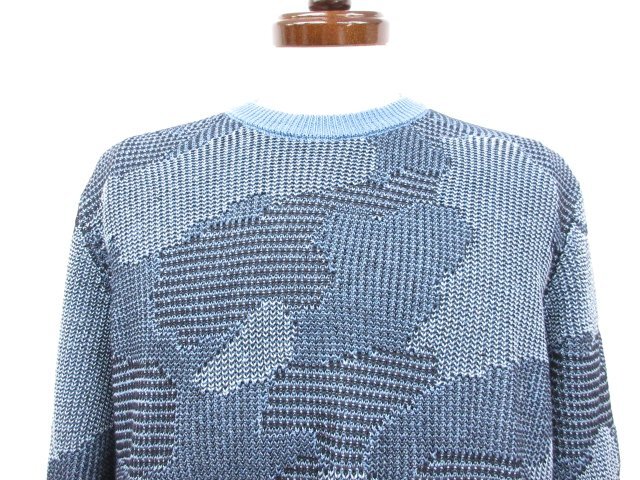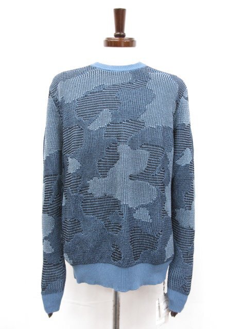 未使用【ザノーネ ZANONE】 812993 Z1347 Z5506 定価71500円 麻×綿 カモフラ風編柄 長袖ニット (メンズ) size48 ブルー系◯10ZZN0054◯
