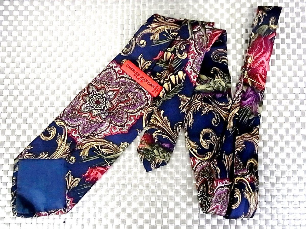 ♪38225C♪良品【花 植物 装飾 柄】シャルルジョルダン【CHARLES JOURDAN】ネクタイ