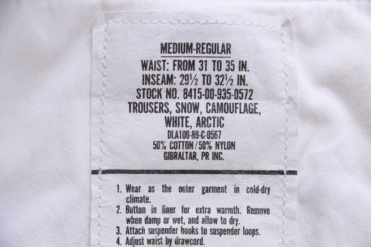 89年 U.S.ARMY【TROUSERS, SNOW, CAMOUFLAGE, WHITE, ARCTIC】オーバーパンツです。