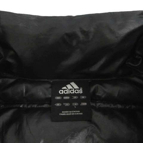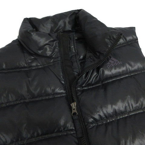 アディダス adidas ダウンベスト JD1042 スタンドカラー ロゴ刺繍 ジップアップ 軽量 ダウン80% ブラック 黒 L メンズ