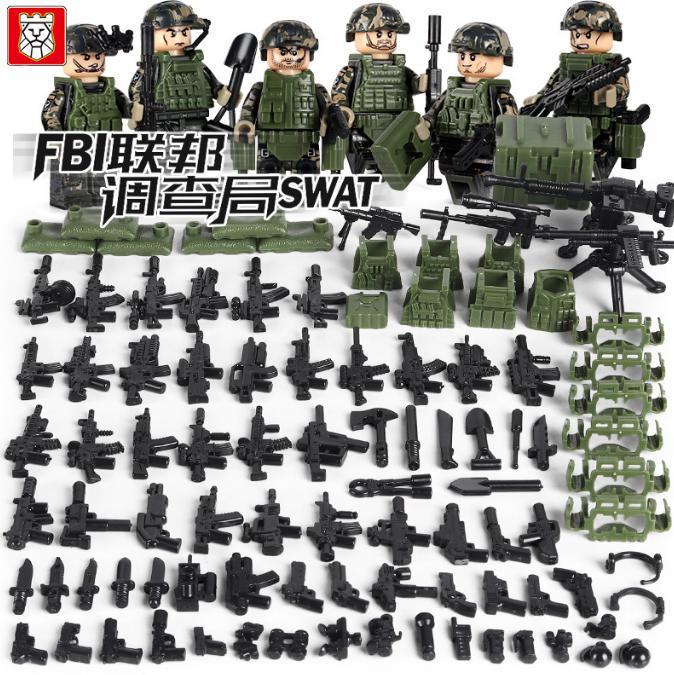 LEGO 互換 レゴ FBI 迷彩 SWAT 大量武器 ミニフィグ6体セット