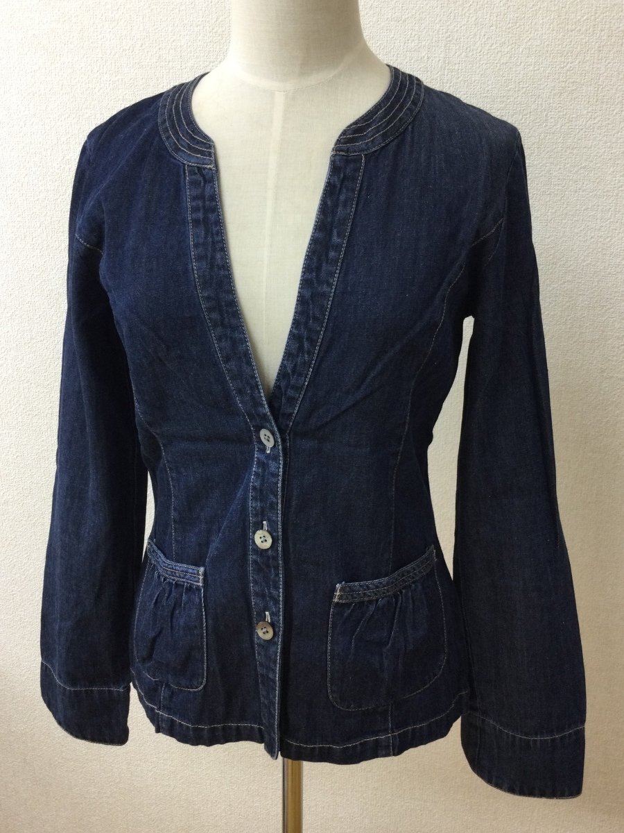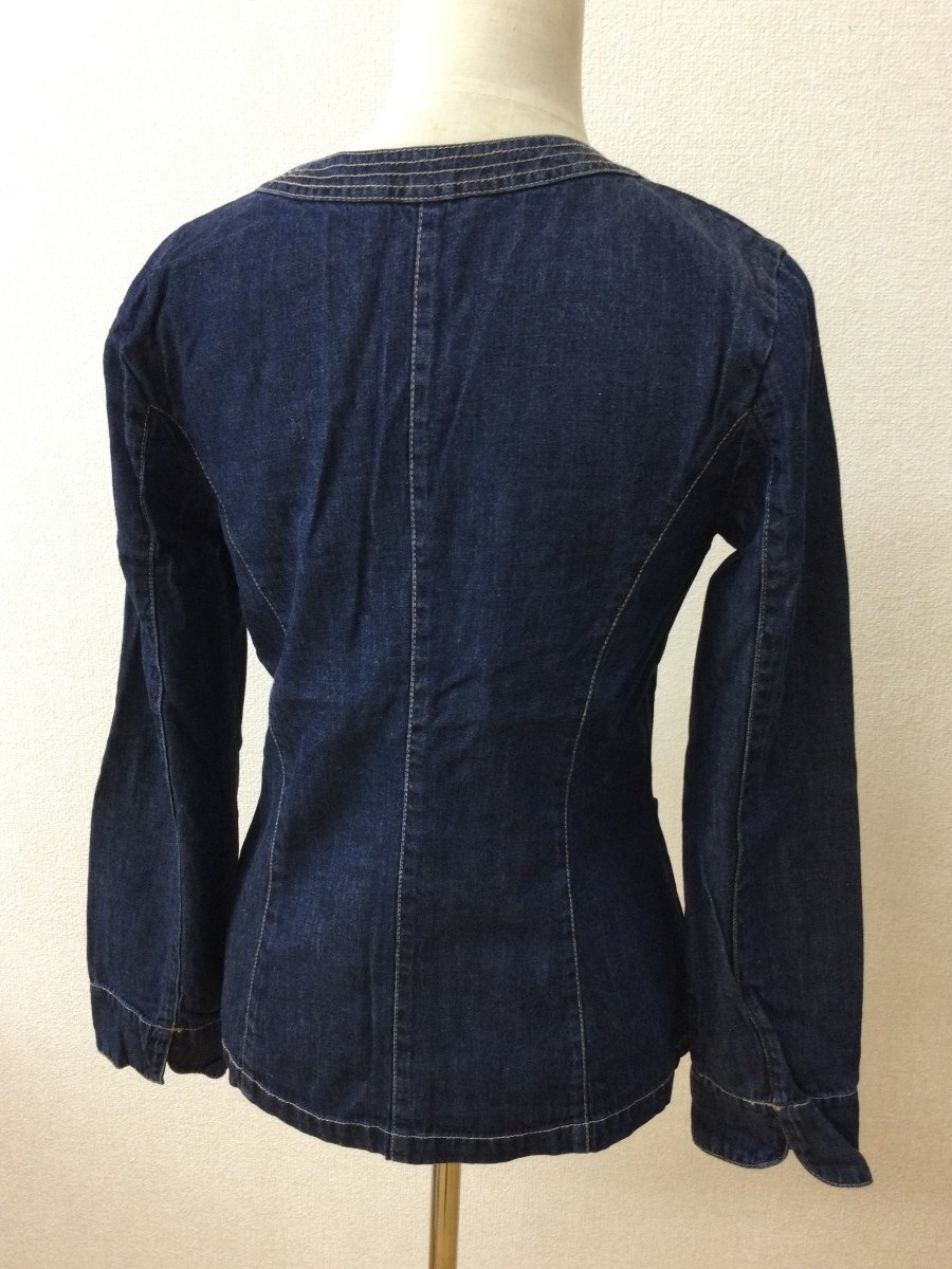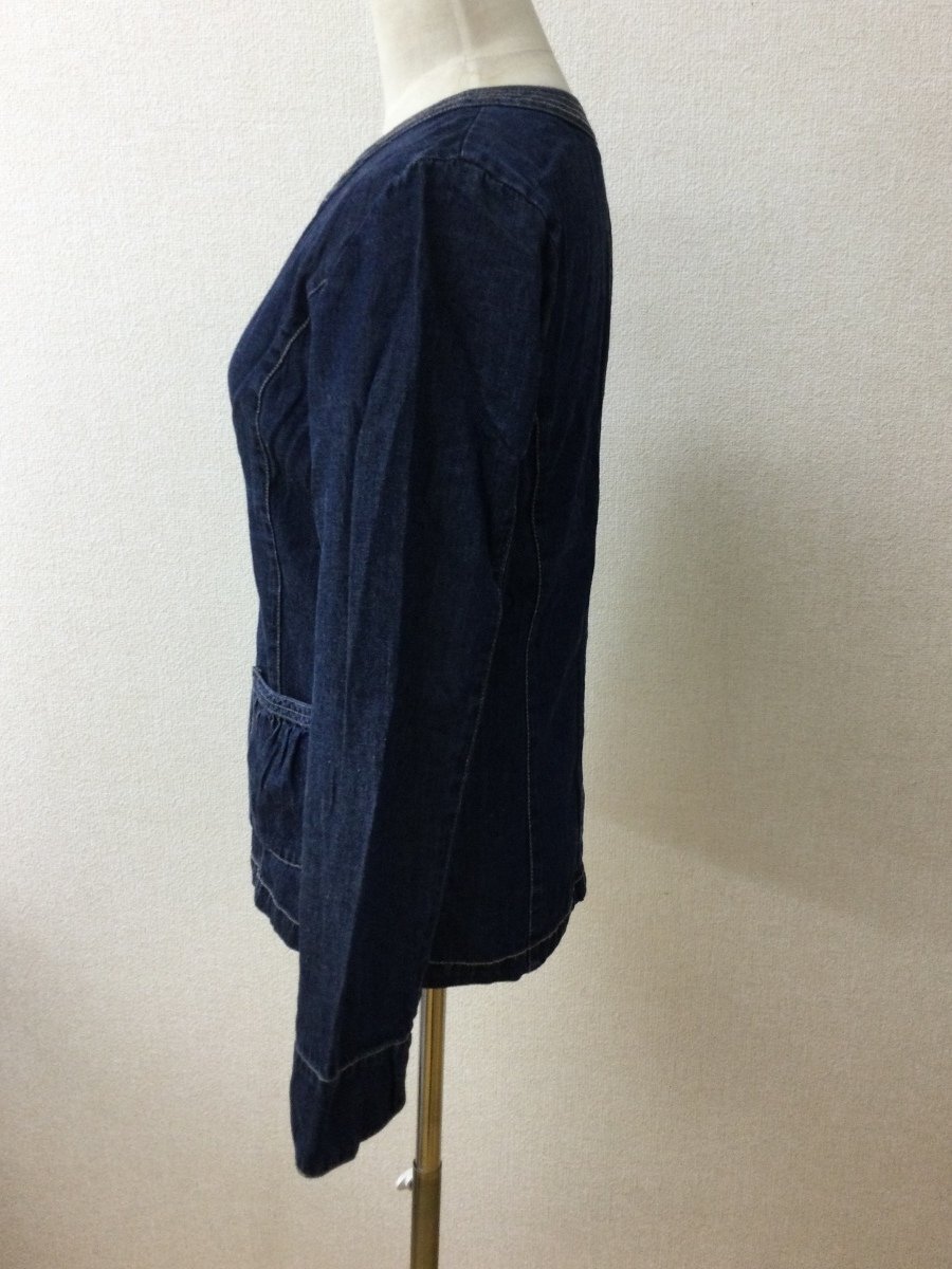 管理番号:99^136516 ローラアシュレイ デニムのジャケット えりなし 紺色 表示サイズ:7 実寸(参考)