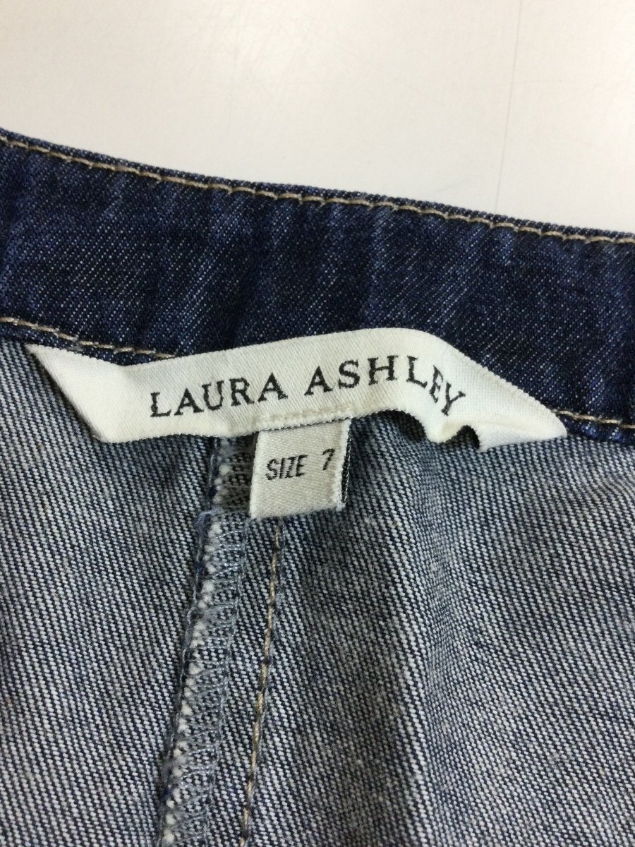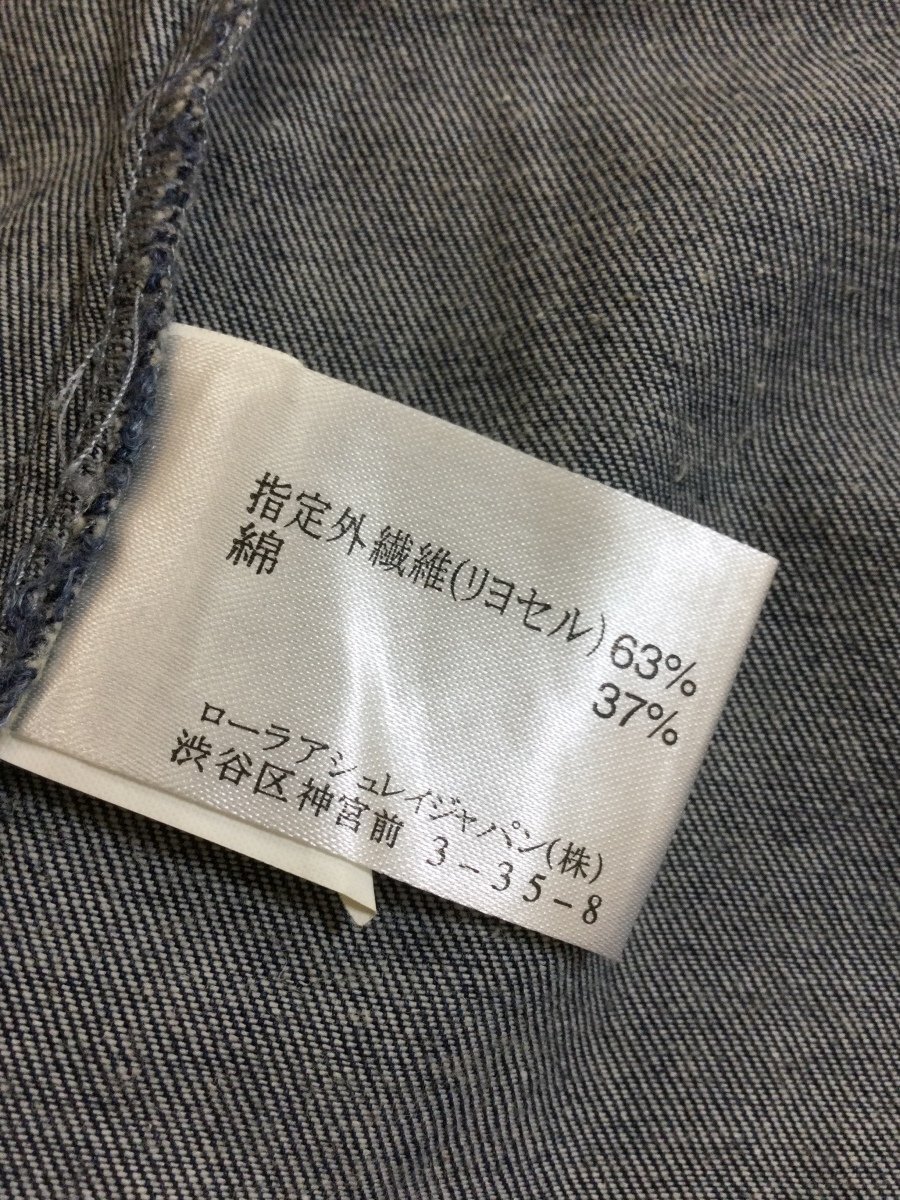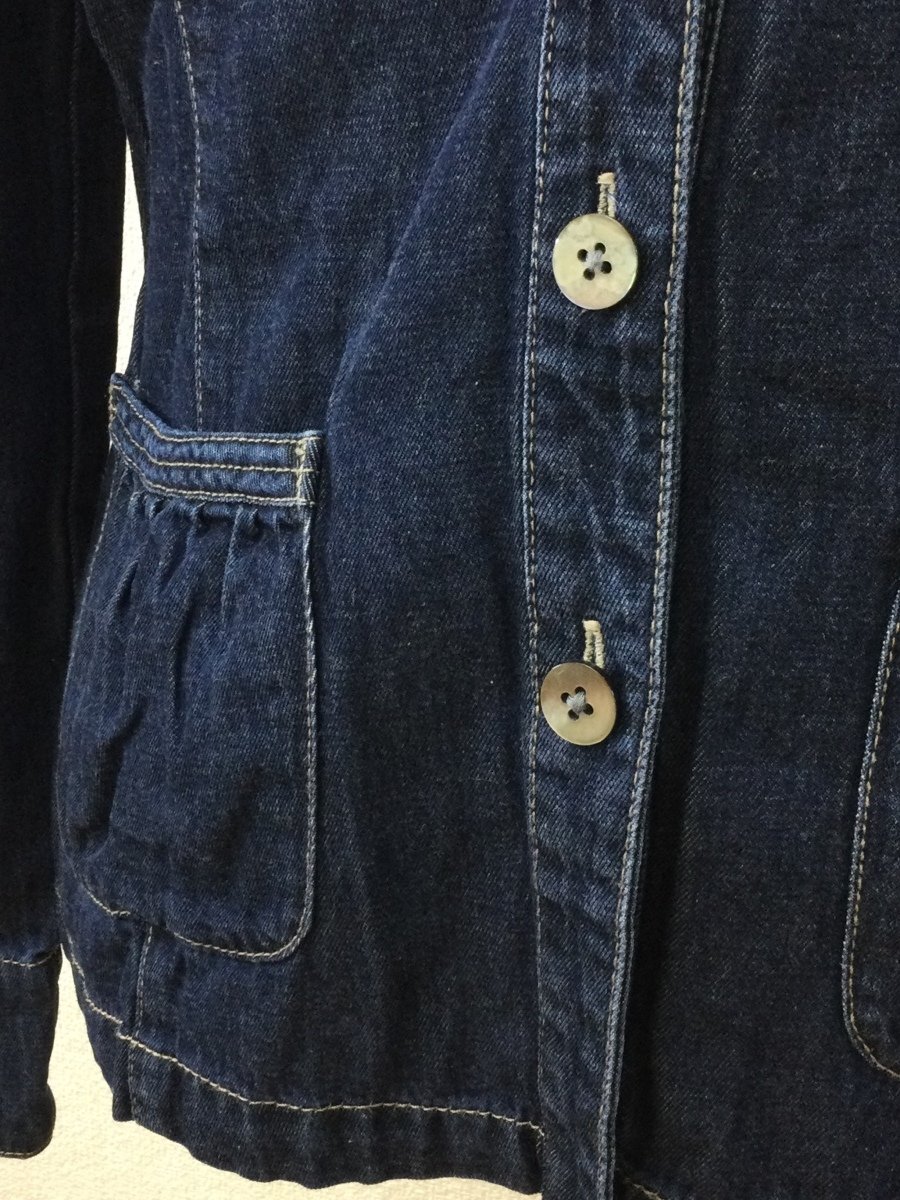 管理番号:99^136516 ローラアシュレイ デニムのジャケット えりなし 紺色 表示サイズ:7 実寸(参考)