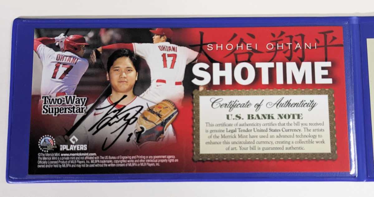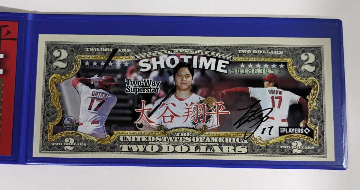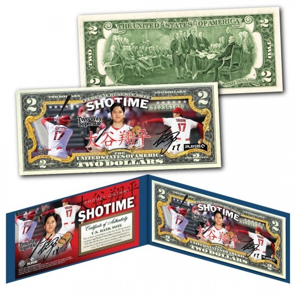 アメリカ 限定2ドル紙幣 大谷翔平 SHOHEI OHTANI Shotime サイン 法定通貨 限定品 USA 証明書&ホルダー付き 新品レア 送料込み 即決