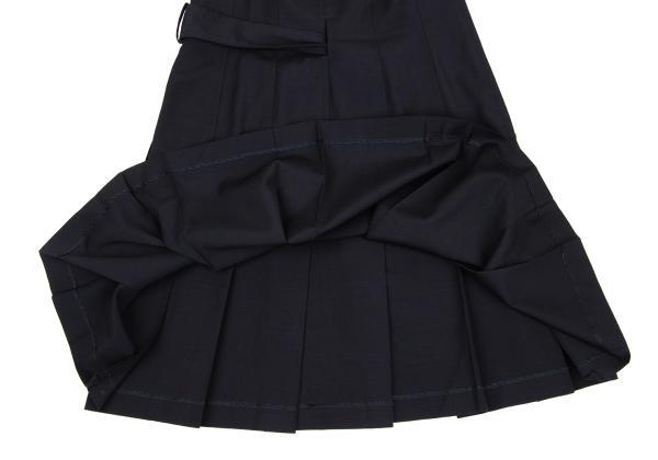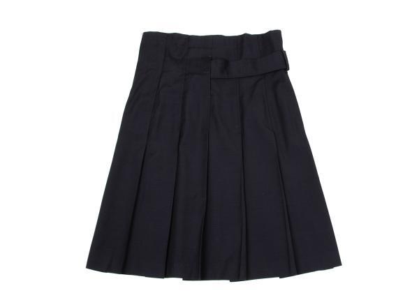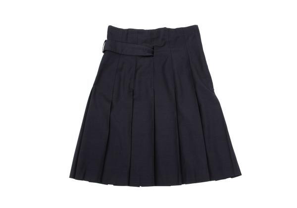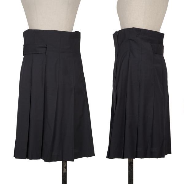 | コムデギャルソンCOMME des GARCONS ウールベルトデザインハイウエストプリーツスカート 紺M |