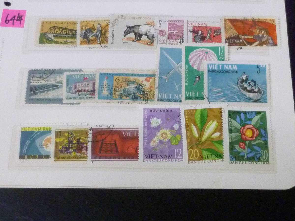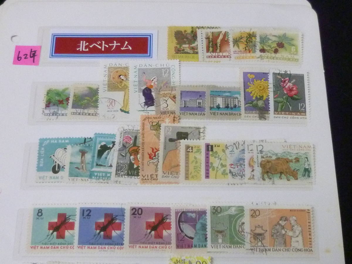 23 P 【北ベトナム切手】 1962-1965年 各種 記念 計130種 3リーフ 使用済・VF