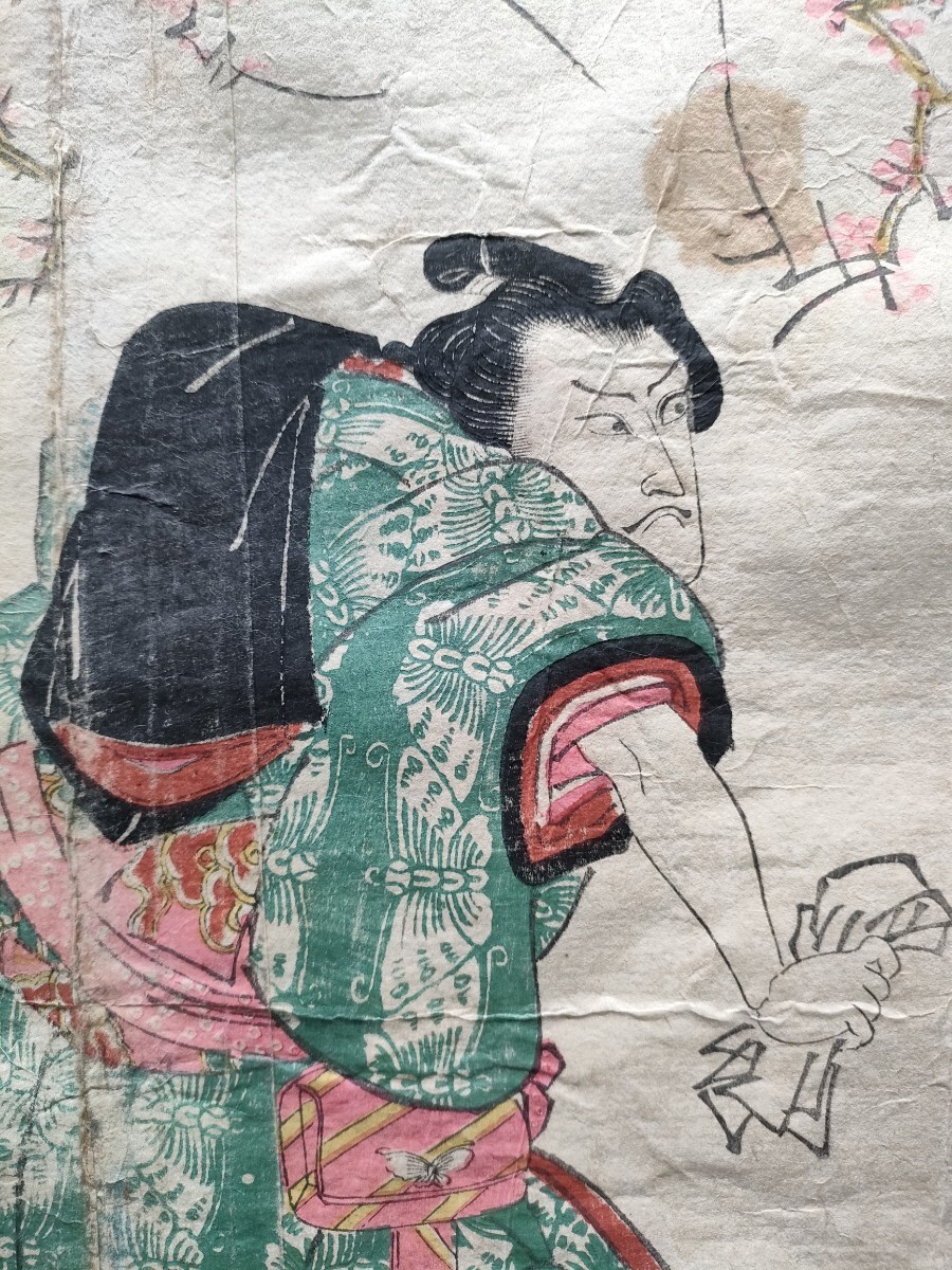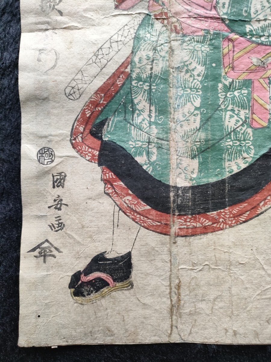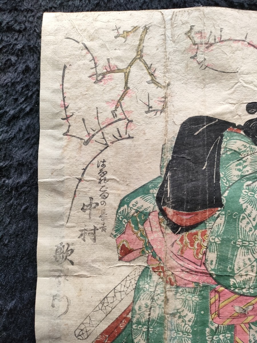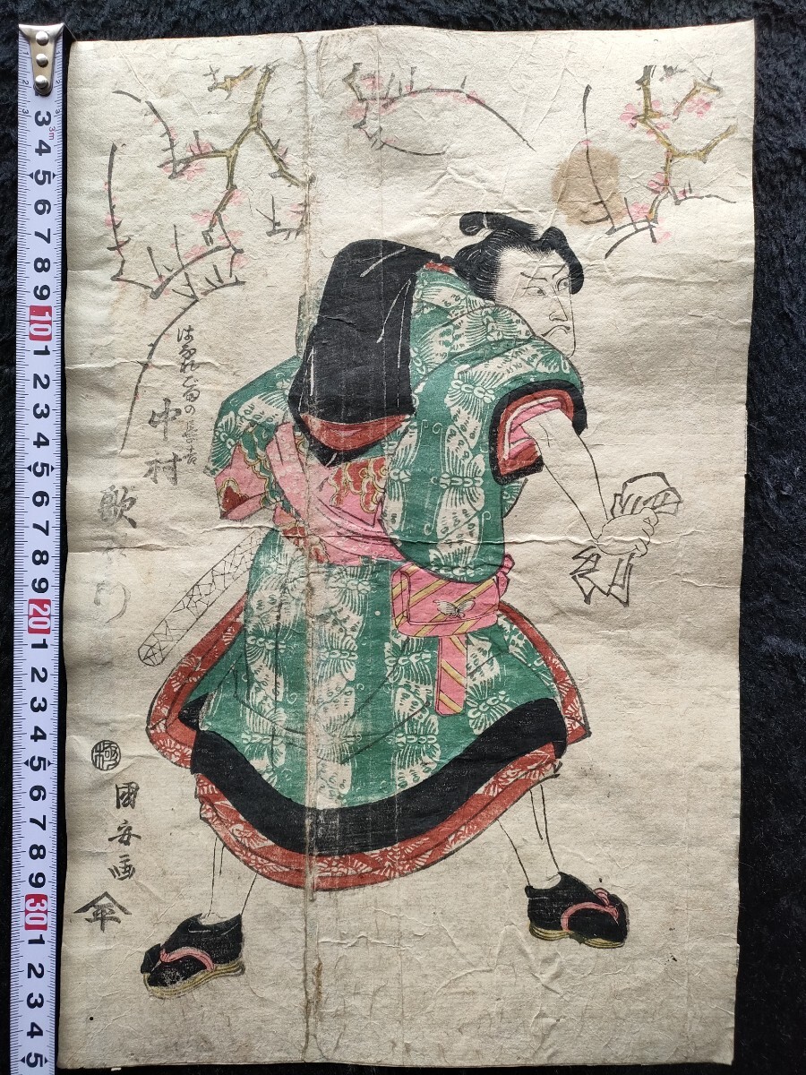 江戸期/真作 歌川国安「中村歌右衛門」本物浮世絵木版画 役者絵 歌舞伎絵 芝居絵 錦絵 大判 裏打ち