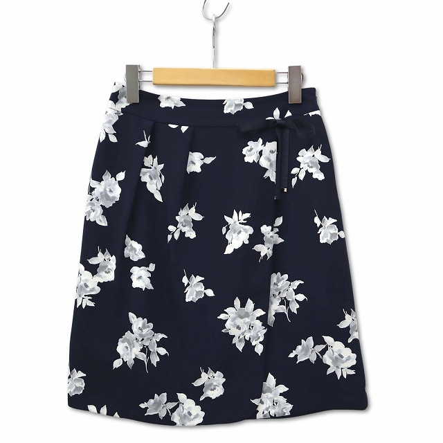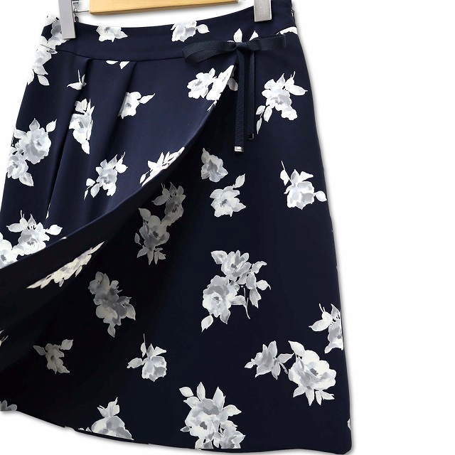 ミッシュマッシュ MISCH MASCH グログランリボン フラワープリント フェイクラップ ミニスカート ネイビー M レディース