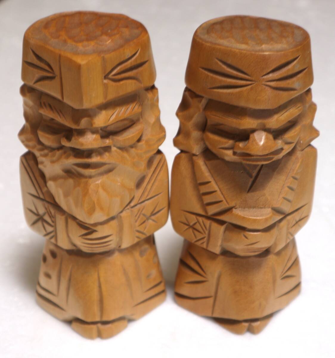 アイヌ木彫り人形ペア 高さ15㎝ 北海道土産 中古品