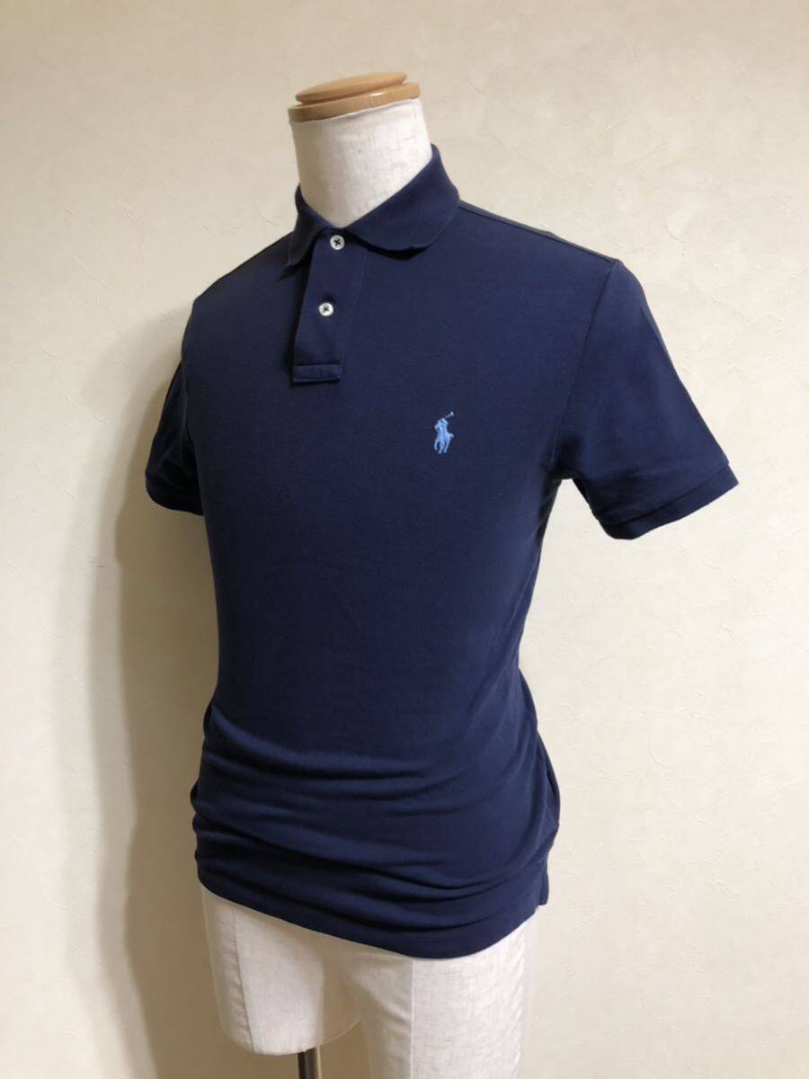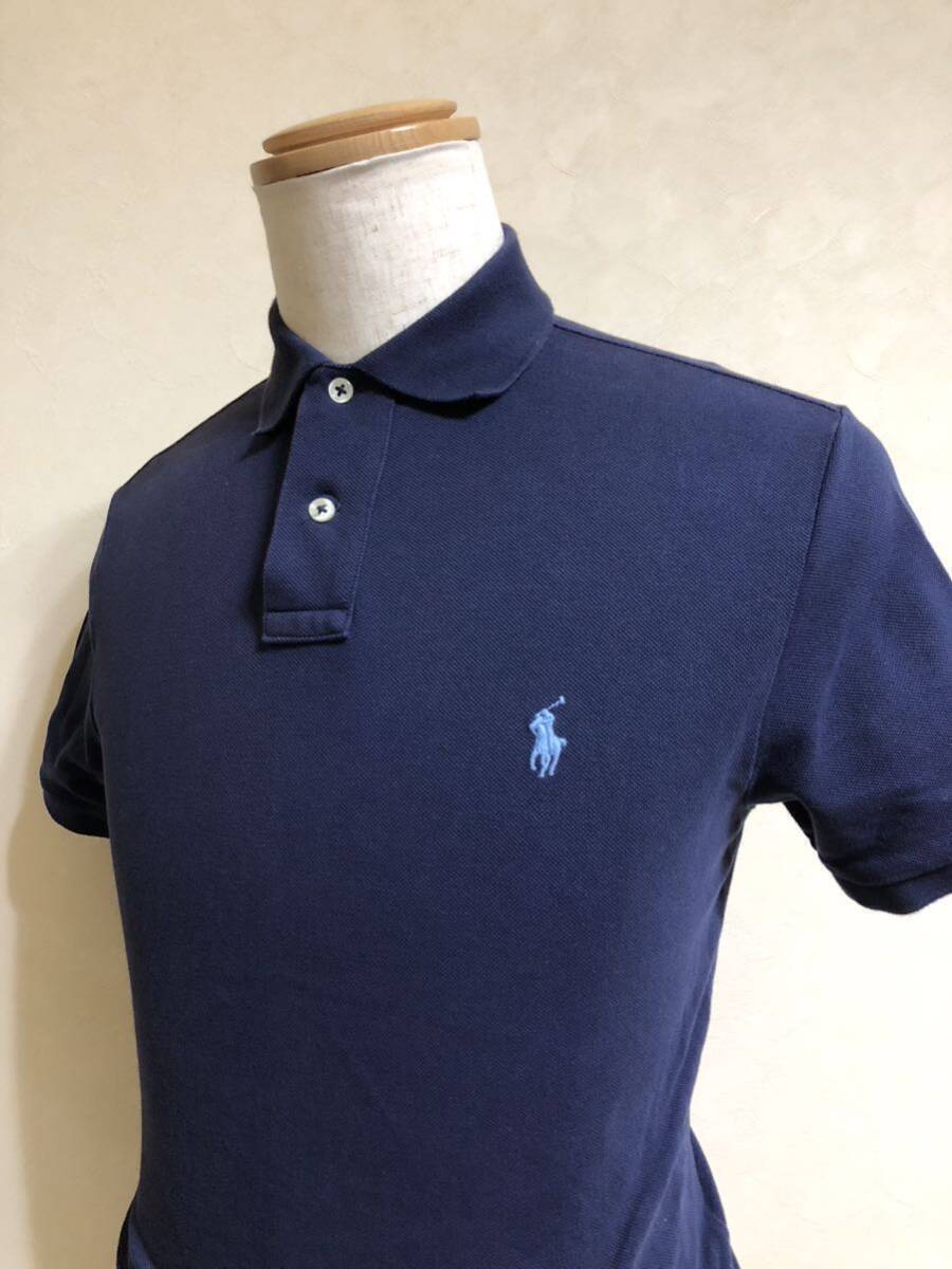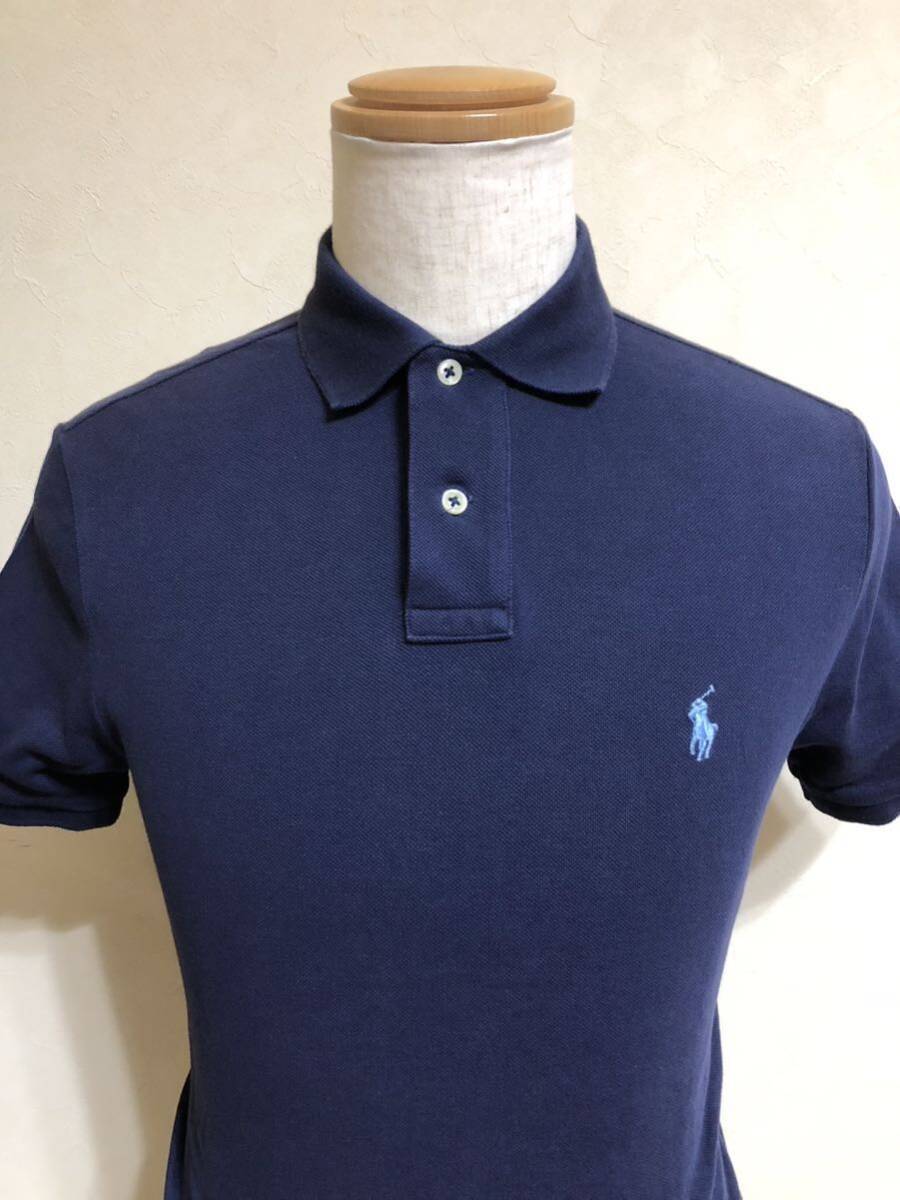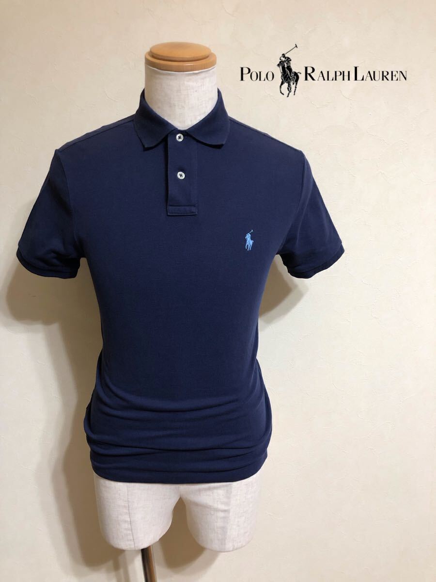 【良品】 Polo Ralph Lauren ポロ ラルフローレン アイコン 鹿の子 ポロシャツ トップス サイズS 半袖 ネイビー カスタムフィット 綿