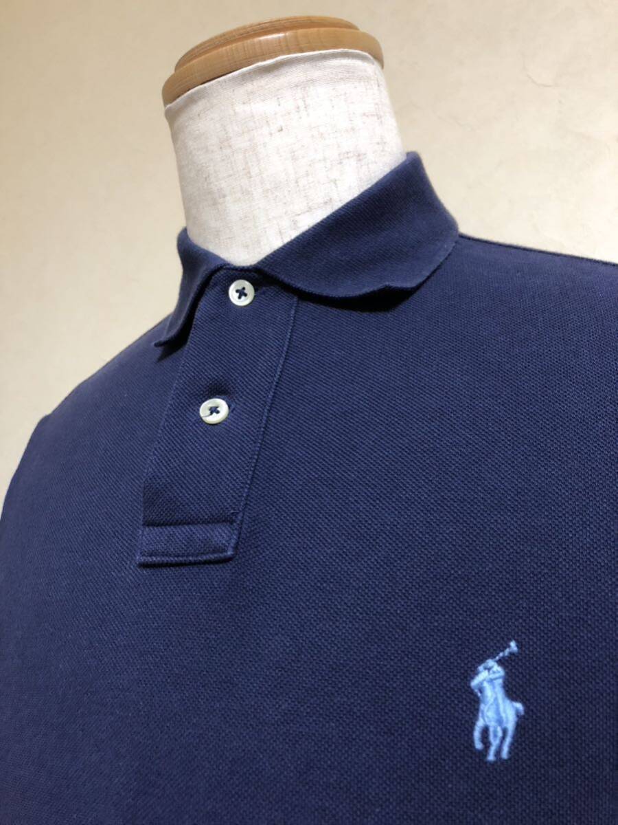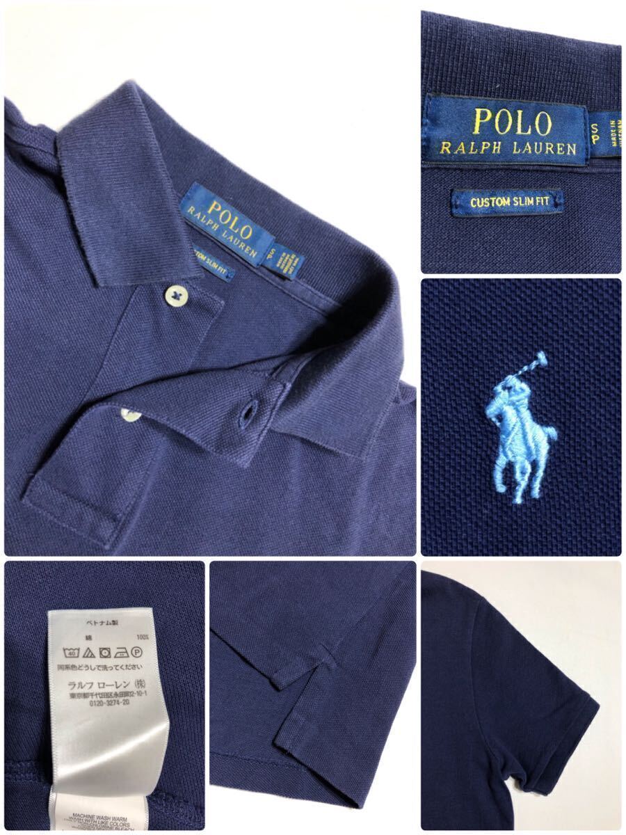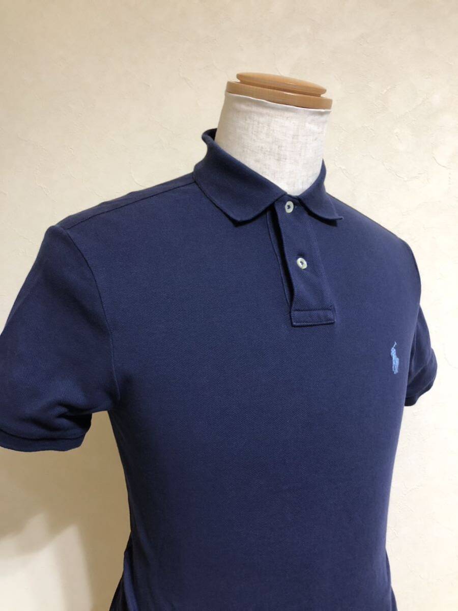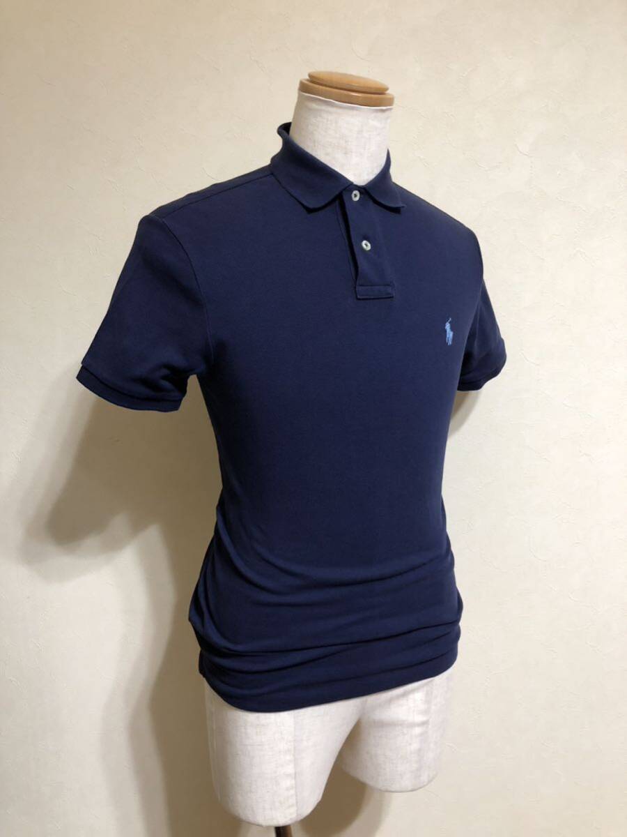【良品】 Polo Ralph Lauren ポロ ラルフローレン アイコン 鹿の子 ポロシャツ トップス サイズS 半袖 ネイビー カスタムフィット 綿