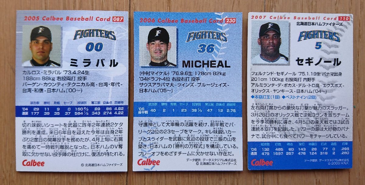 【カード・カルビー】ミラバル 2005年087 / マイケル 2006年230 / セギノール 2007年110 計3枚セット 北海道日本ハムファイターズ