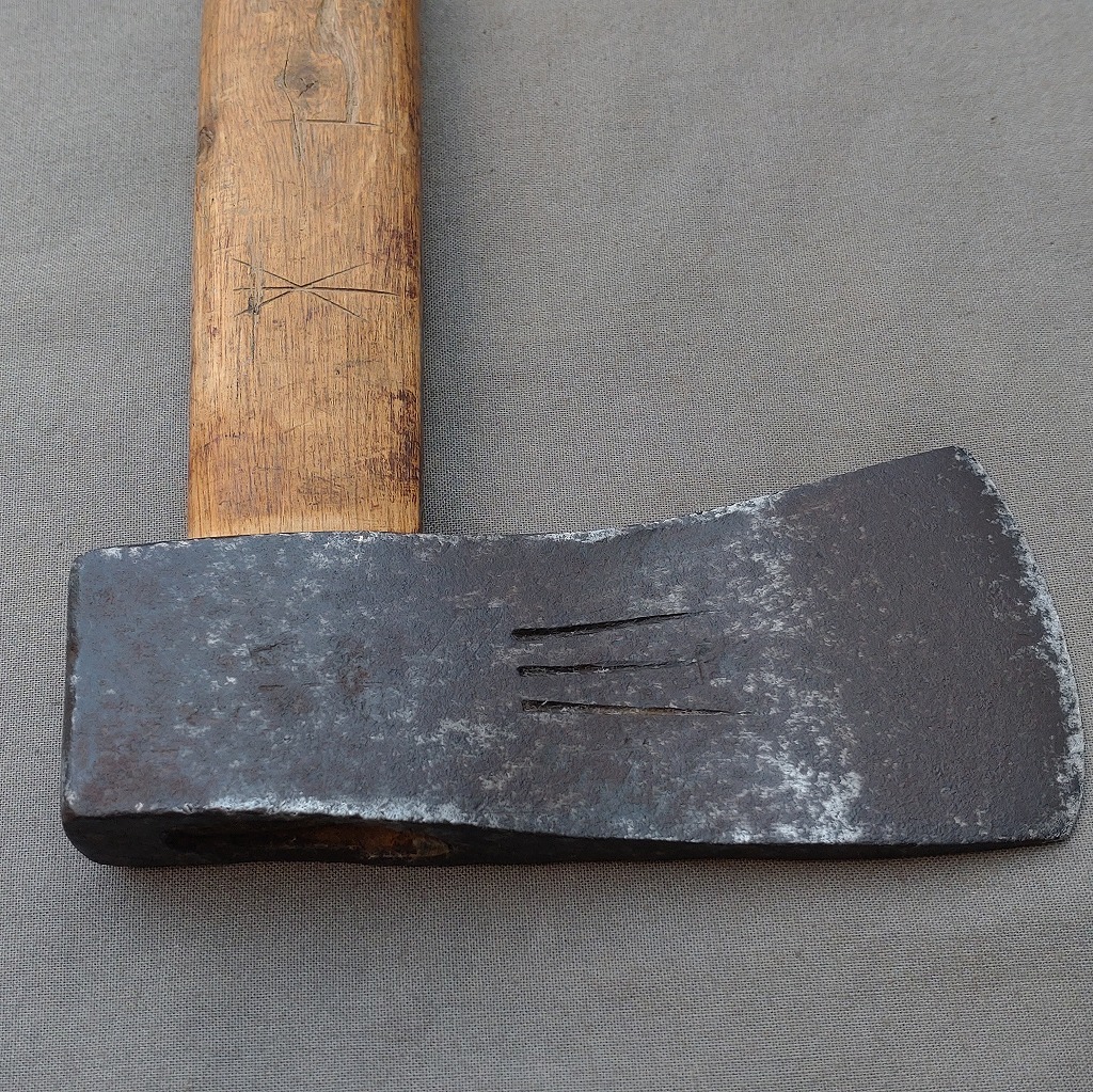斧 おの オノ 在銘 刃長約62㎜ 全長約445㎜ 重量約750g 古斧 槙割り キャンプ アウトドア 【3896】