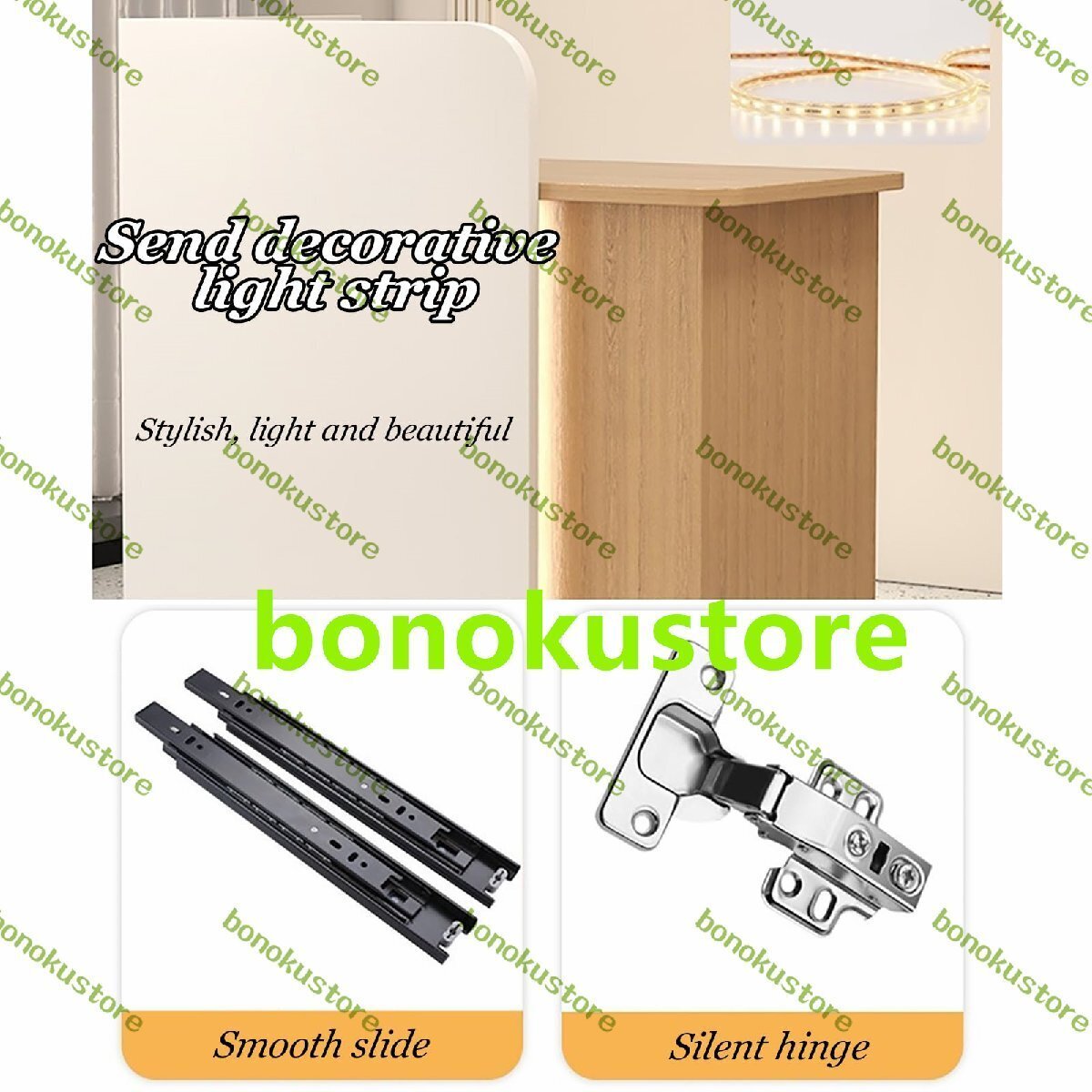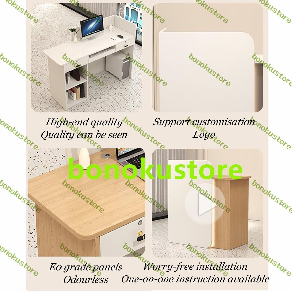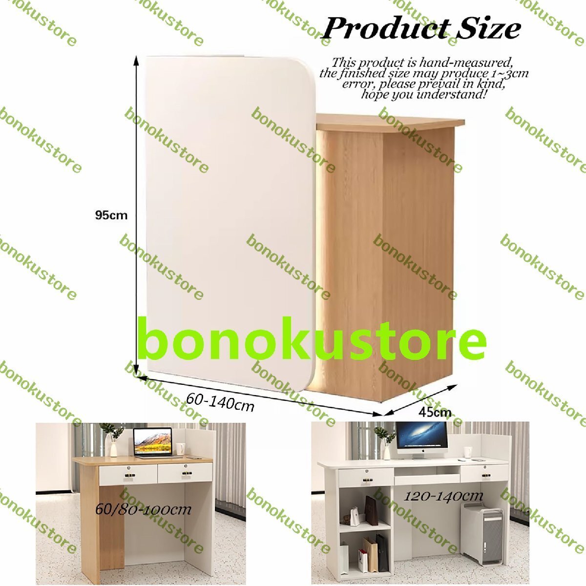 受付デスクには、顧客用スクリーン付きカウンタートップと収納スペースがあります。オフィスでもビジネスビルでも、さまざまなオフィスで使用して、全体的なイメージと作業効率を向上させることができます。特徴:厳選されたEOグレードのパネル、無臭。シンプルでモダンなドアハンドル、美しく実用的。キャビネットの弧が突き出ており、丸みを帯びたデザインでぶつかりを防ぎます。装飾的なライトストリップ、ファッショナブルで豪華、美しい。仕様:製品名: 受付デスク素材: 人工ボードスタイル: シンプルモダン重量: 40kgサイズ: 60x45x95cm、80x45x95cm、100x45x95cm、120x45x95cm、140x45x95cm製品に含まれるもの:1 * L字型レジフロントデスク