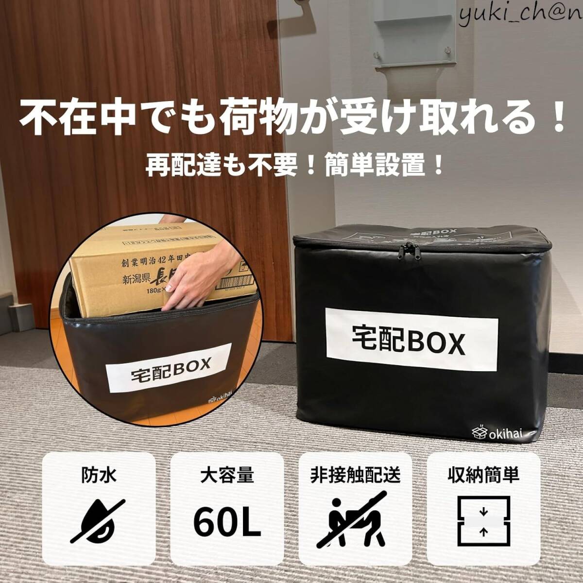 宅配ボックス 配達ボックス 置き配 宅配BOX 防水 非接触配送 大容量 60L ブラック 黒 南京錠 盗難防止 簡単設置