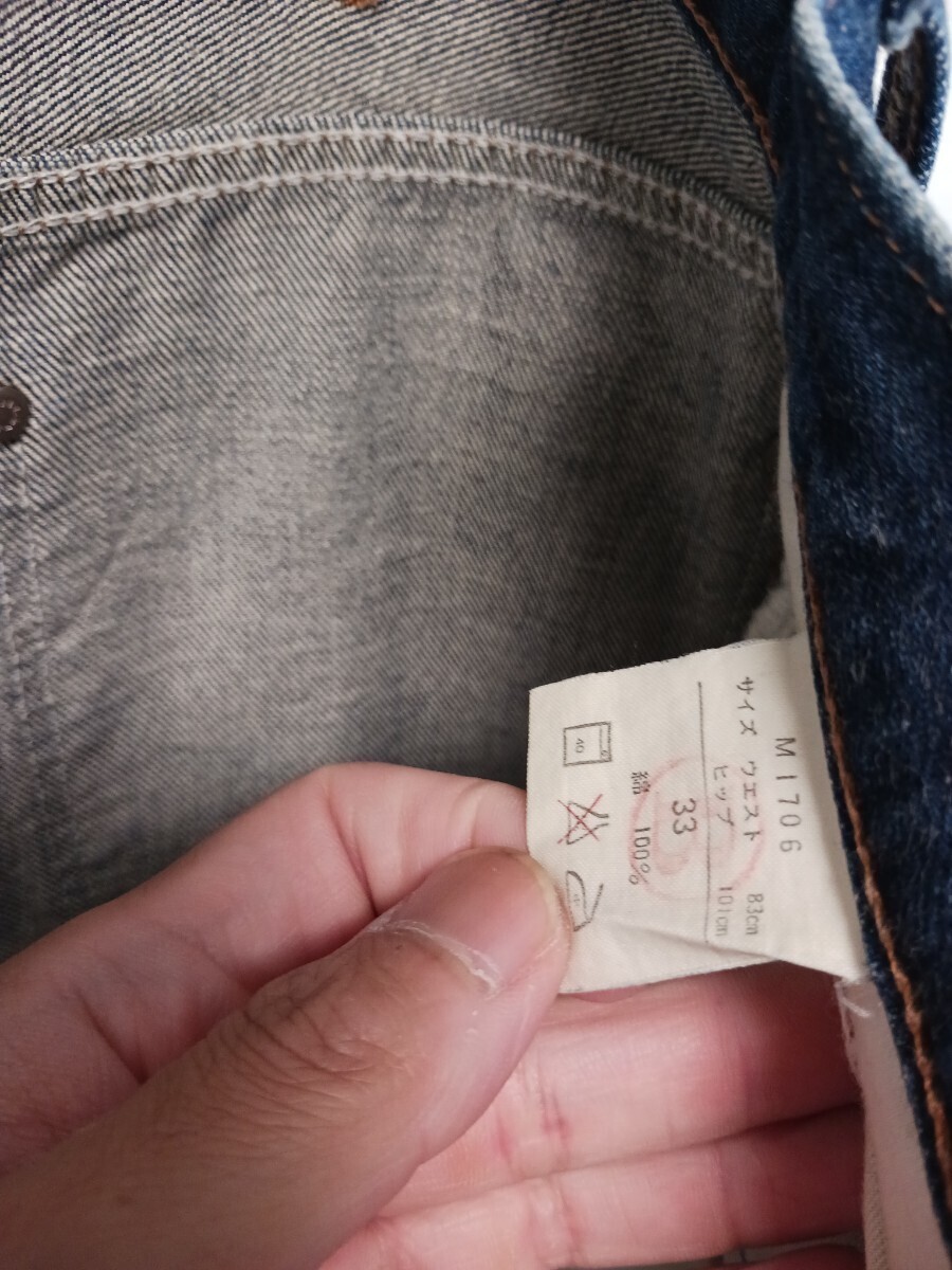 117 ラングラー デニム W33 ウエスト83cm ブルーベル Wrangler 黒タグ 革パッチ インディゴ M1706 M423 8210 SDAJ 931
