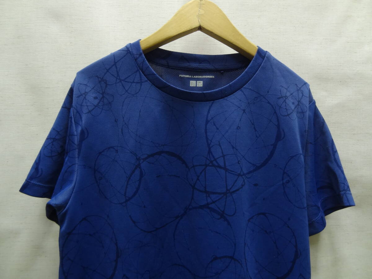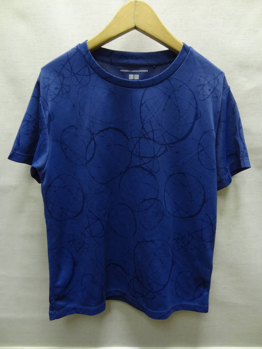 全国送料無料 ユニクロ UNIQLO FUTURA LABORATORIES 子供服キッズ男&女の子 半袖 紺ネイビー色 DRY-EX素材 総柄Tシャツ 150