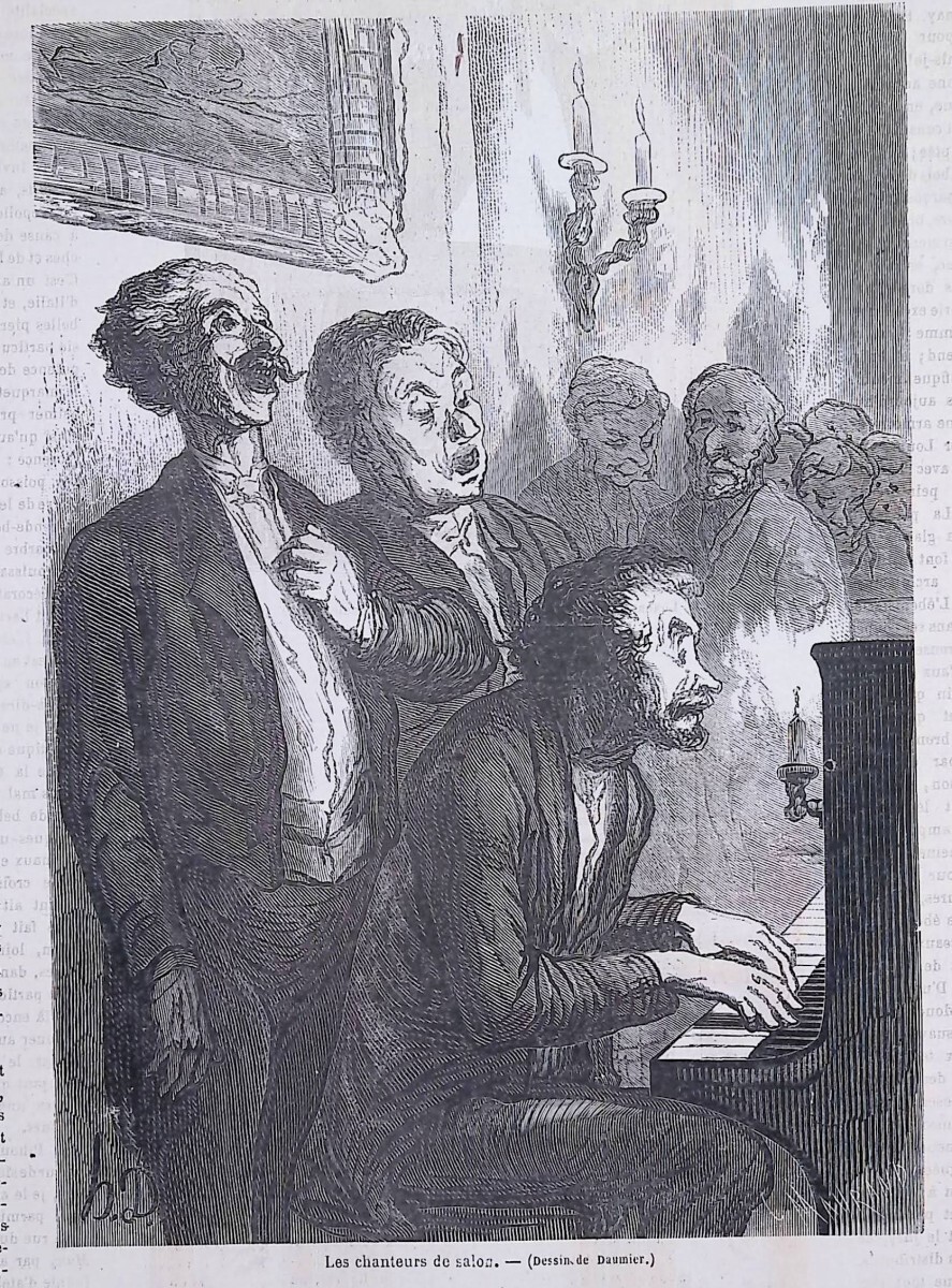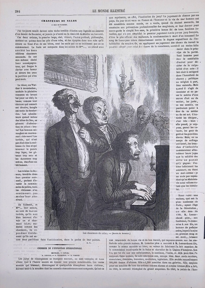 Honore Daumier の作品は、1960年代にパリで刊行される新聞に掲載されるようになります。これは、当時の新聞の一葉です。オリジナルの木口木版画です。 新聞紙のサイズは26cmx36.7cmです。その半分くらいの部分がドーミエの版画です。少し古色が出ていますが、状態は良いと思います。版上にサインがあります。ドーミエの版画のうち、新聞に掲載されたものは、殆ど残っていません。非常に珍しいものです。