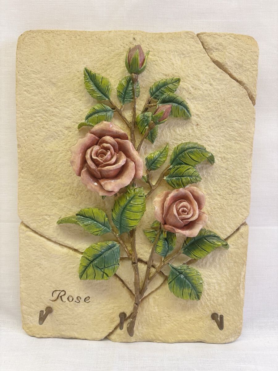 商品名 : 壁掛け フック付き 薔薇 バラ アンティーク風 立体的 インテリア 雑貨 陶器製 No.31