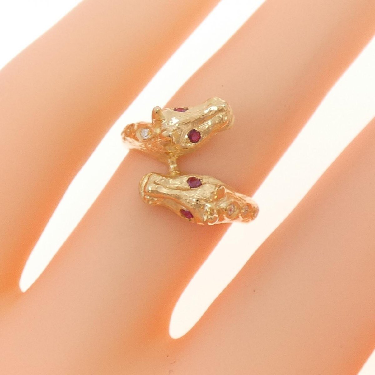 ピンクがかったレッドカラーのルビーを馬の目にセッティング。装いのアクセントになってくれそうです。