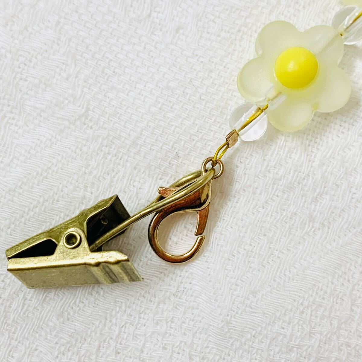 【黄色のお花が可愛い♪】帽子クリップ・スマホハンドストラップ・バックチャーム・マスクストラップ
