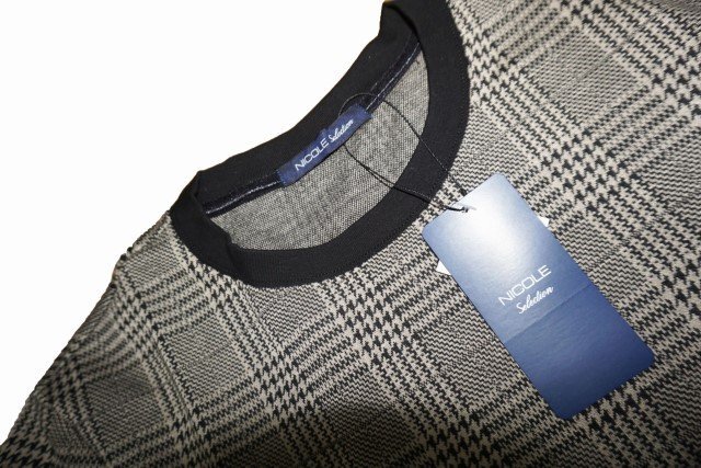 ニコル NICOLE 長袖Tシャツ 千鳥格子 茶系 18 チェック メンズ セレクション 4466-9802 春物 秋物 ブラウン ベージュ ロンT |
