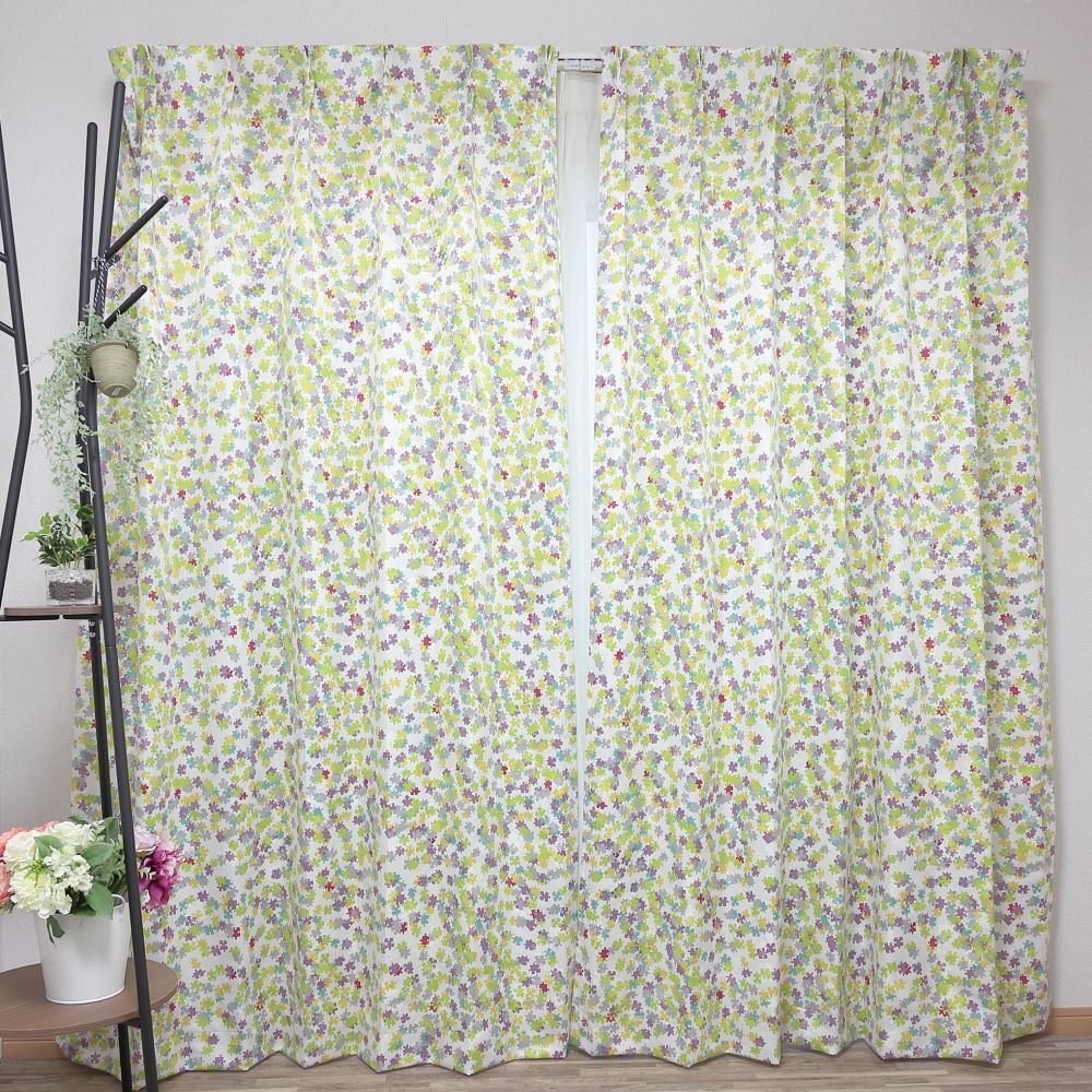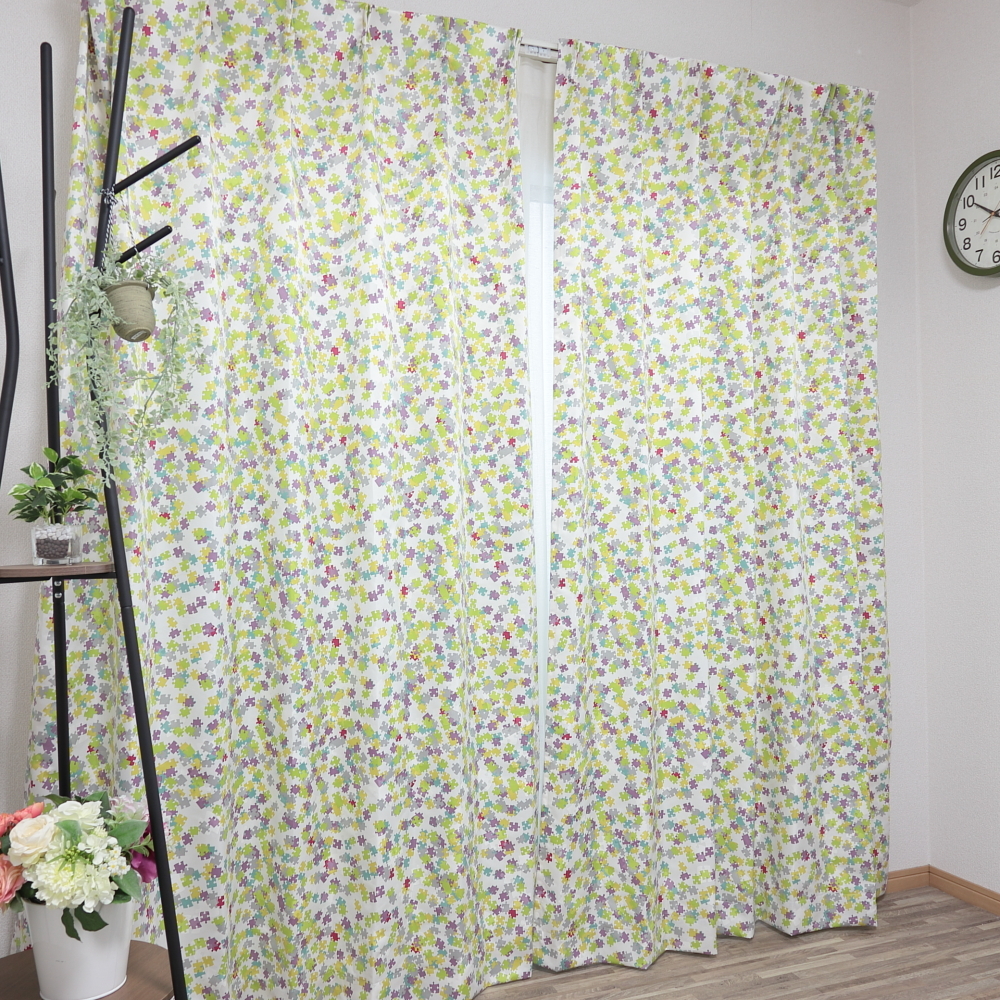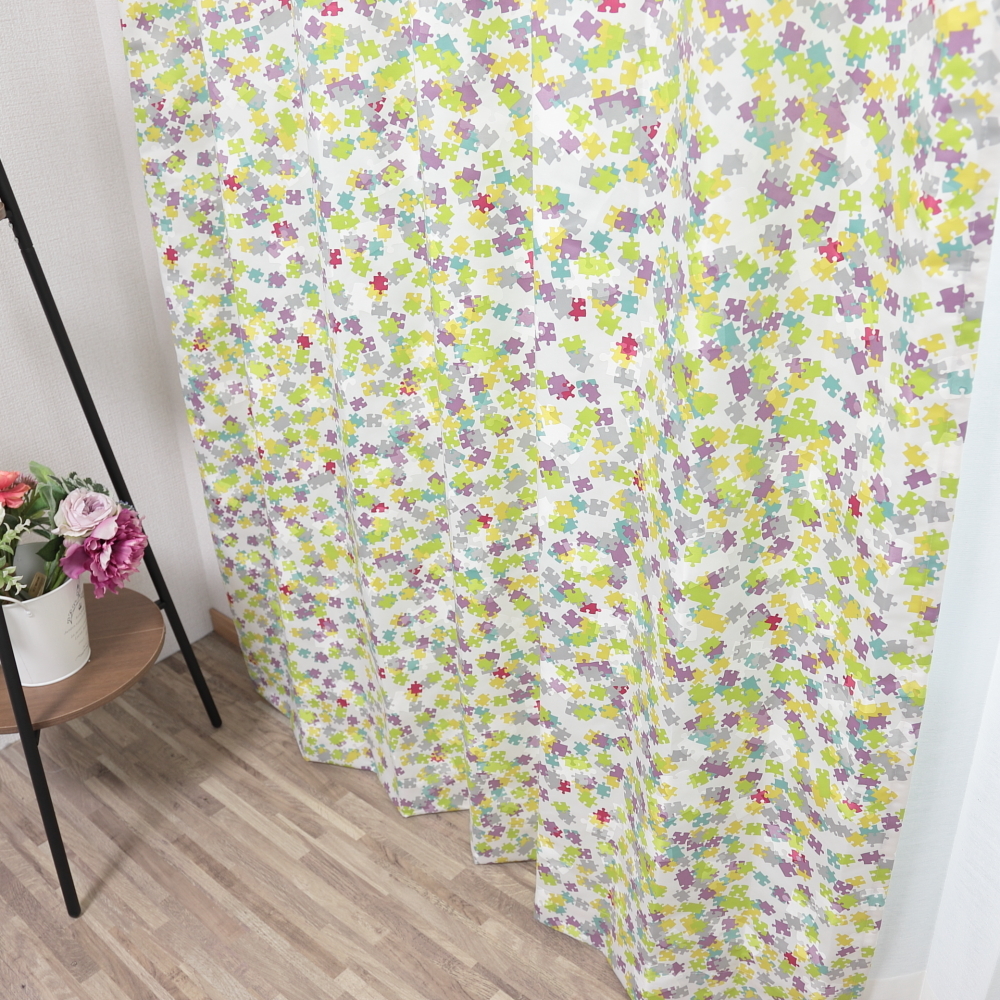 新品 パズル柄ドレープカーテン 幅100cm 丈200cm(2枚組) ACN-121GN 送料込み(一部地域を除き)