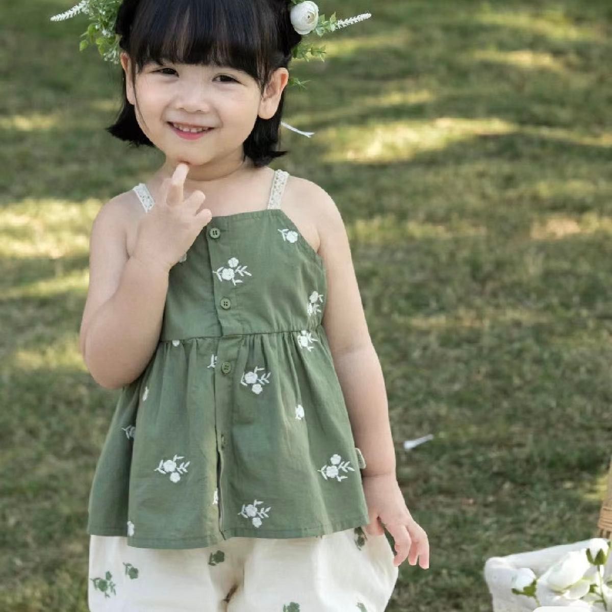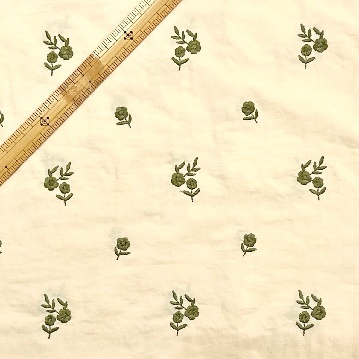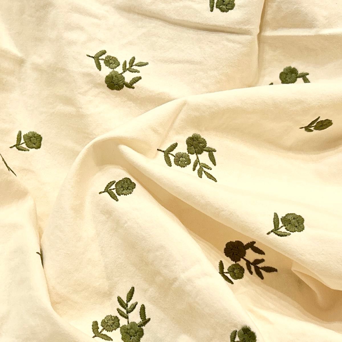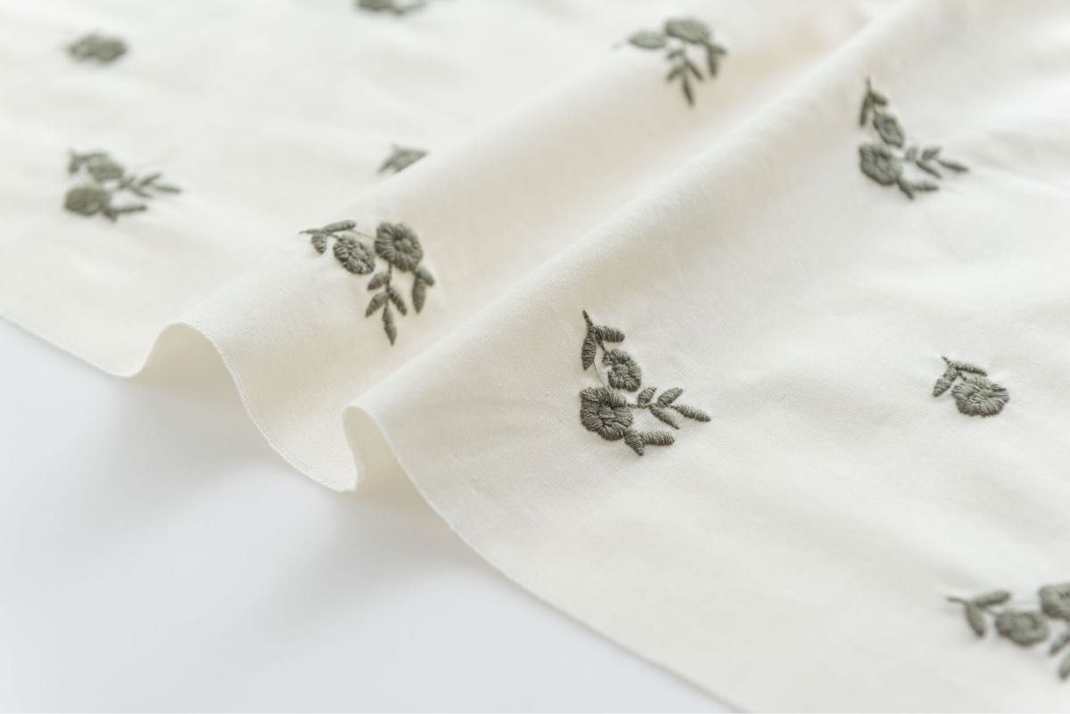 小花柄の刺繍が施されている コットンリネン生地です☆