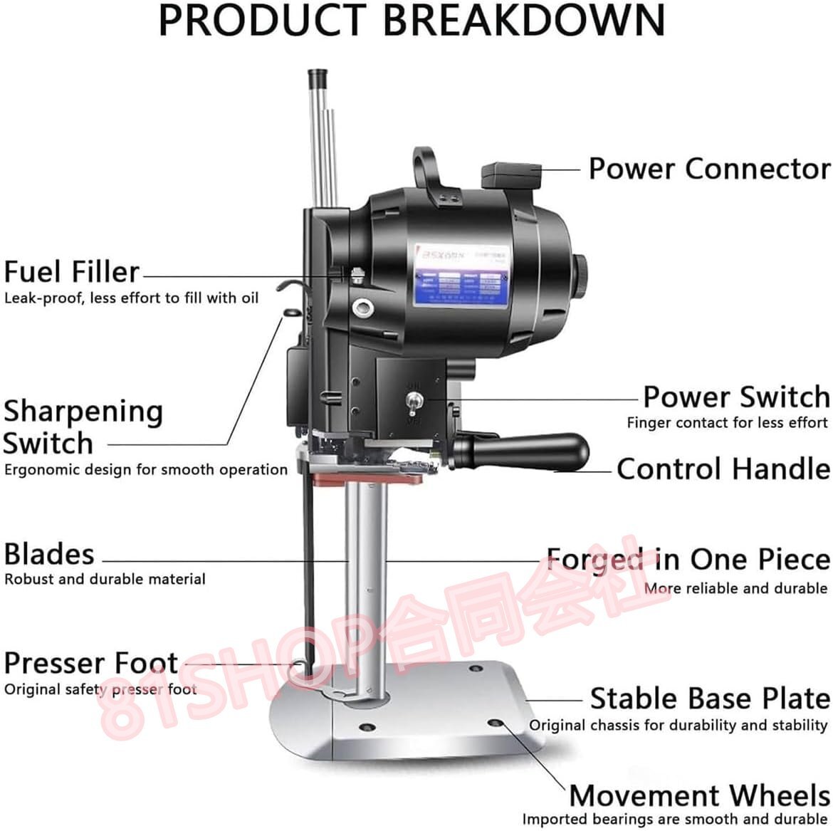 布地切断機: この電動布地カッターは、信頼性のために 1100W/1200W 純銅モーターを備えています。3400 rpm の切断速度で強力な切断力を発揮し、複数の層の布地を楽々と処理します。さまざまな厚さの切断ニーズに対応できます。