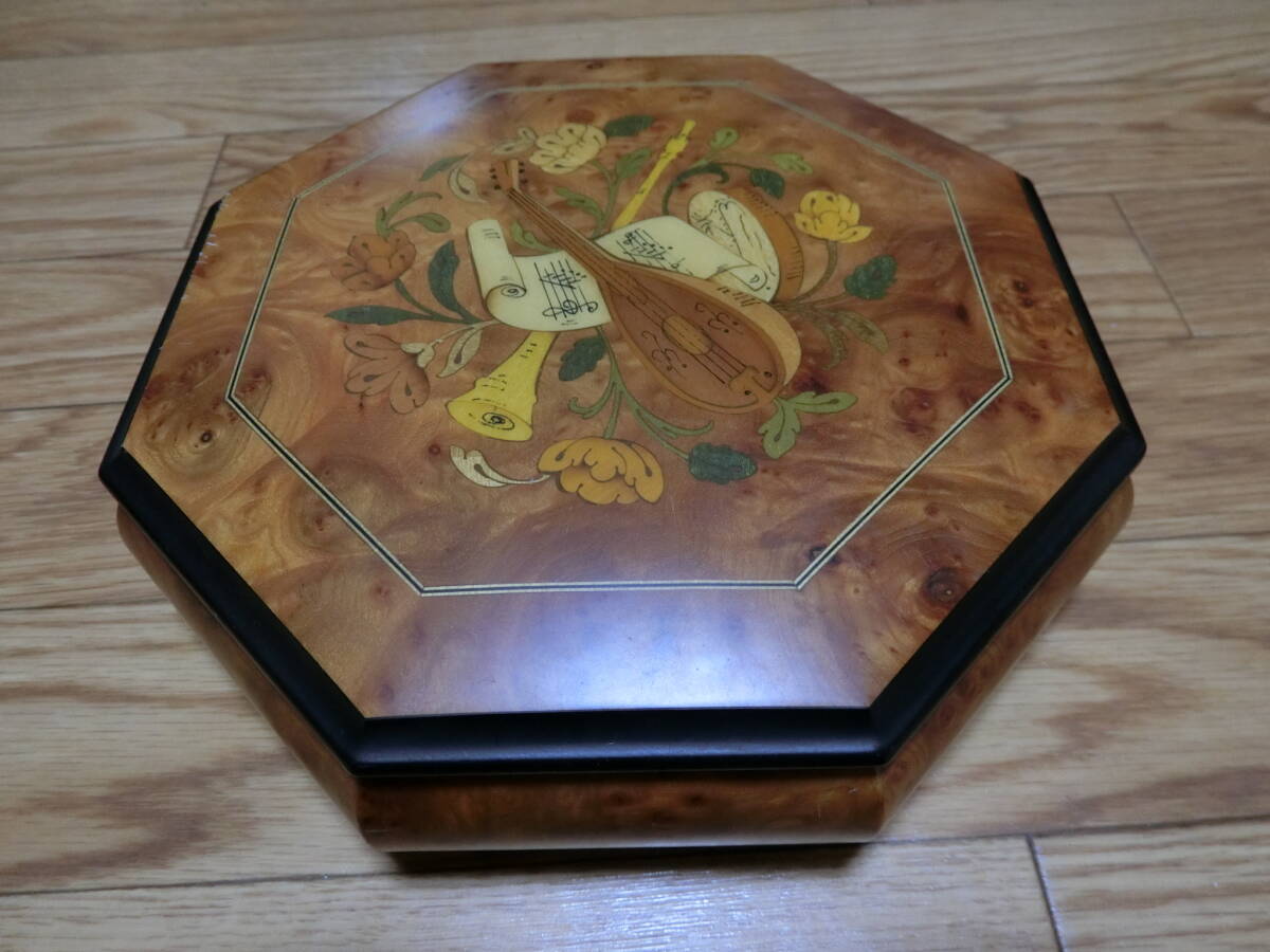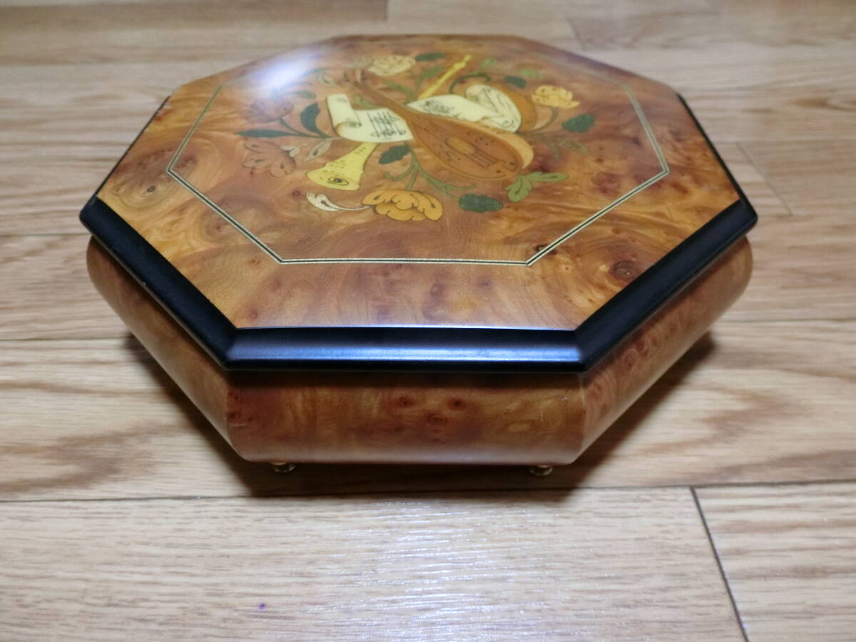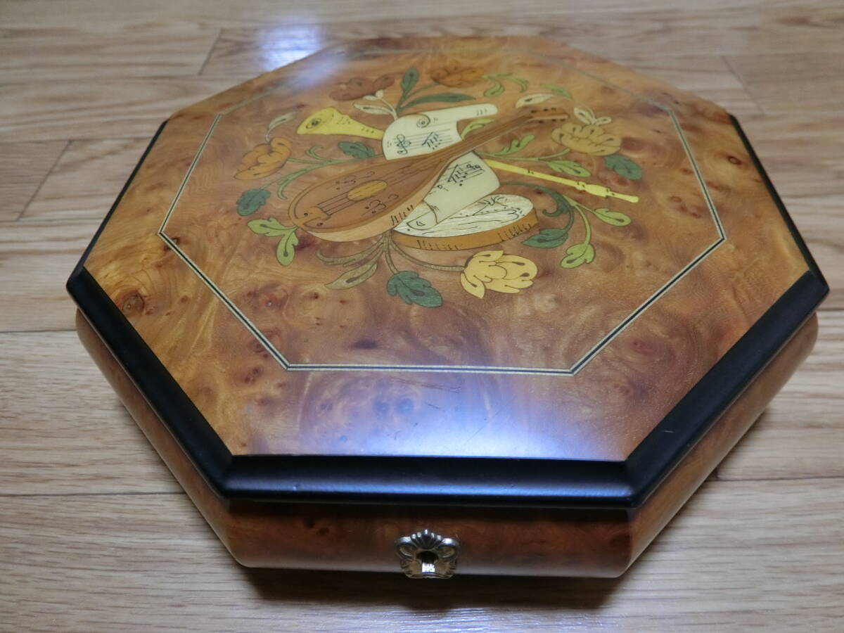 ■得々■ハンドインレイ 八角形木製ジュエリー/象嵌オルゴール//SWISS mucial movement /il pad rino/ゴッドファーザー///