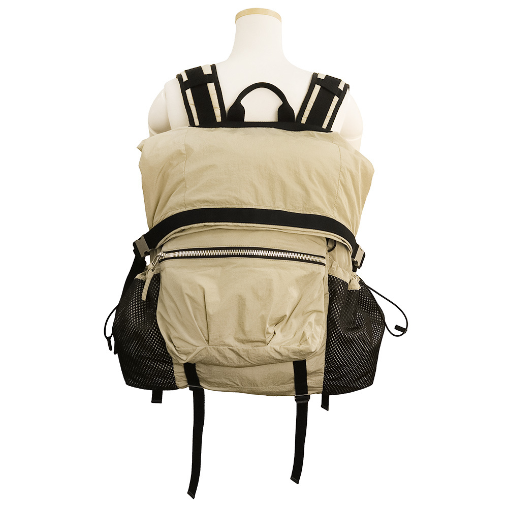 ボッテガヴェネタのバックパック。たくさんのポケットが付いてるのでとても実用的なリュックサックです。ハイキングやピクニックに最適です。