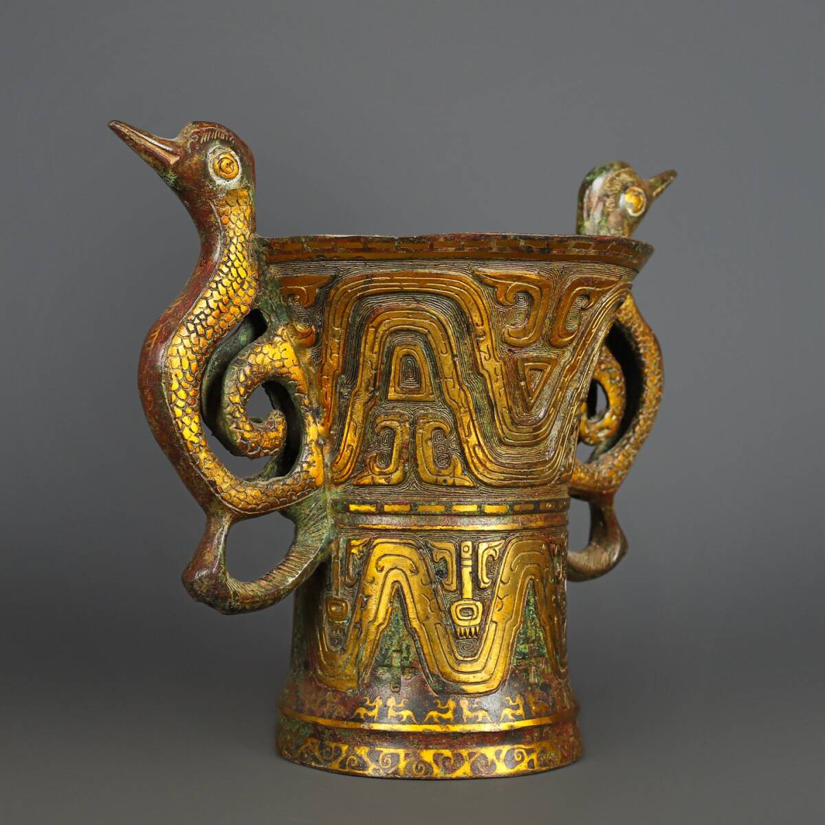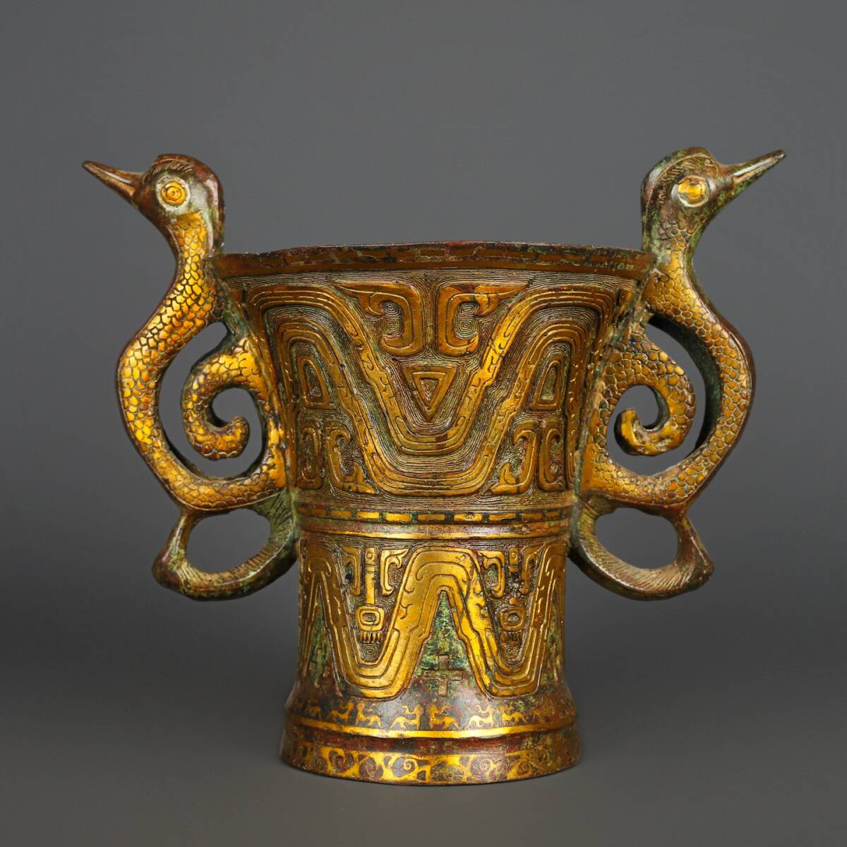 *珍品旧蔵* 漢代 青銅 双鳳鳥杯 銅製 青銅器 骨董品 置物 唐物 古美術品 中国古玩 H44