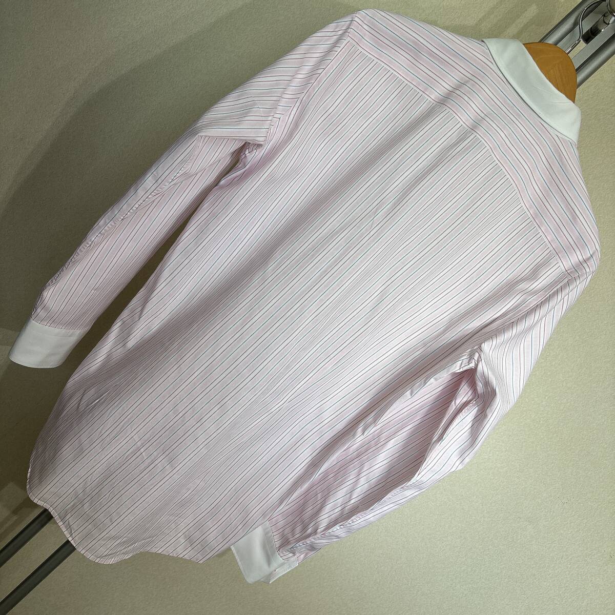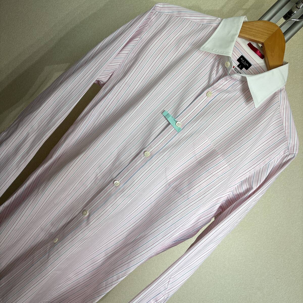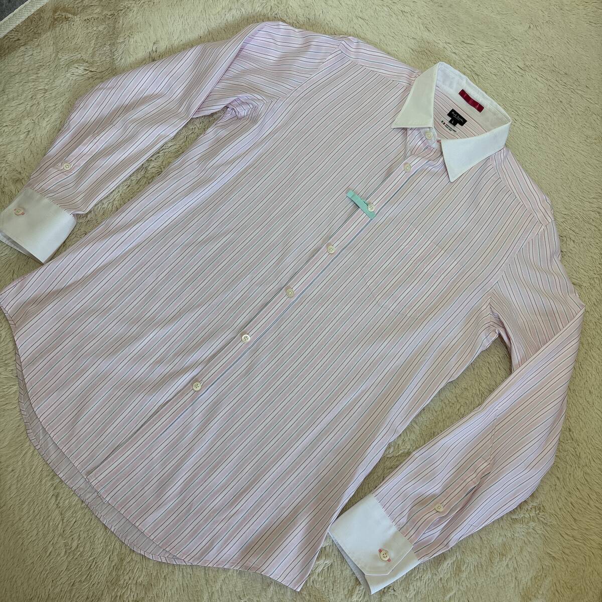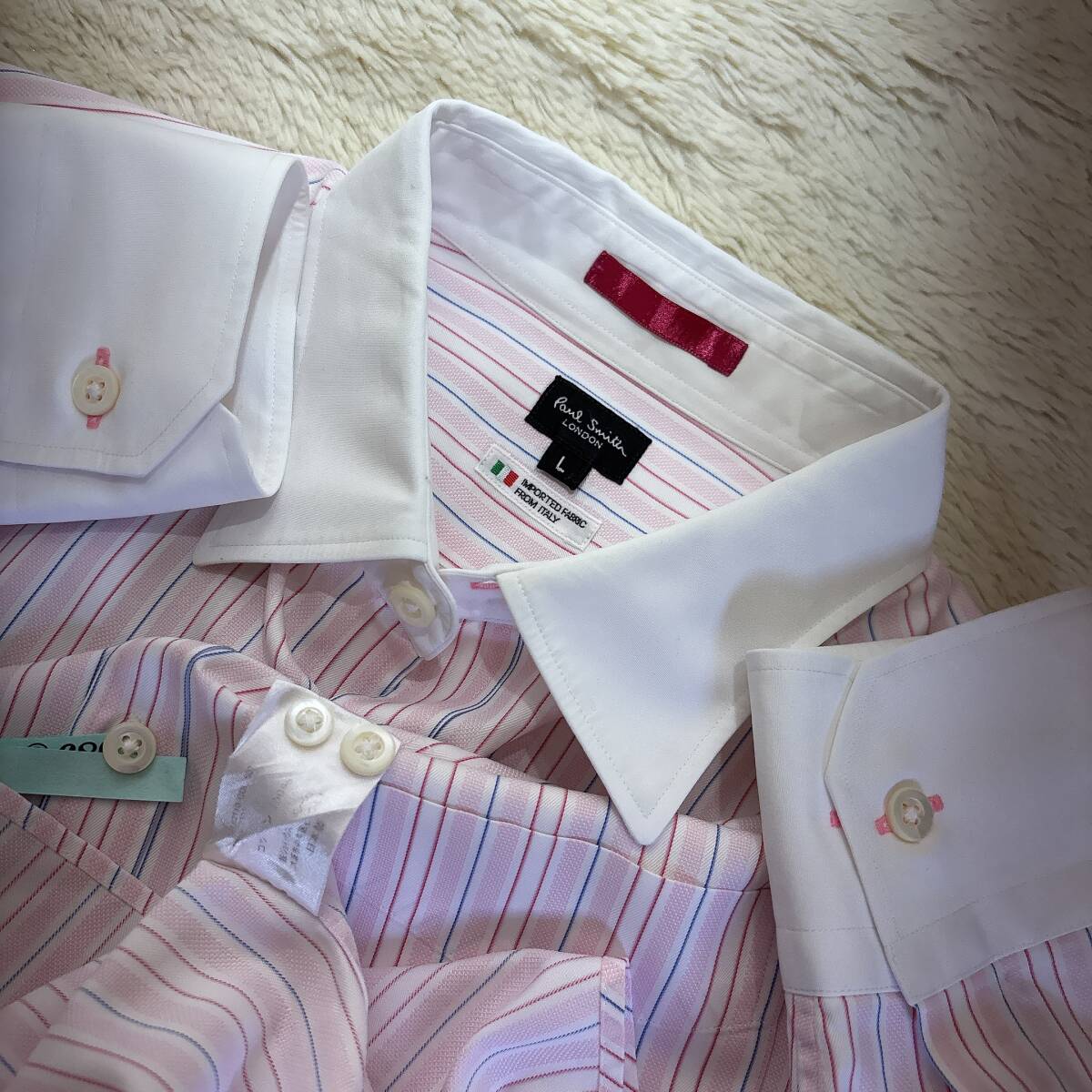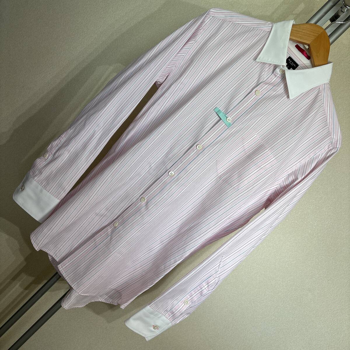 | X445■ポールスミス★白*ピンク青ストライプ★クレリックシャツ■L | ||||||||||||||||||||