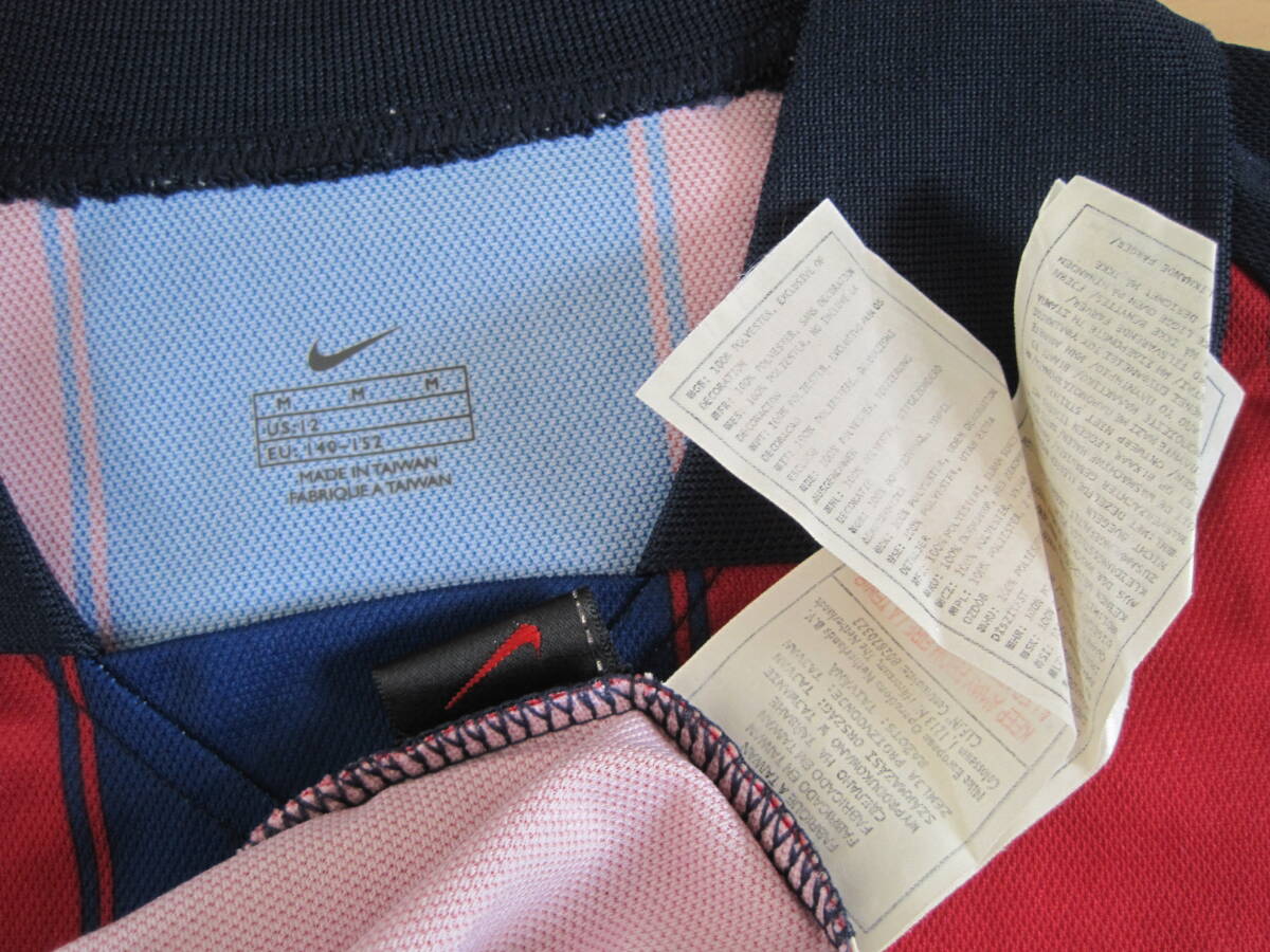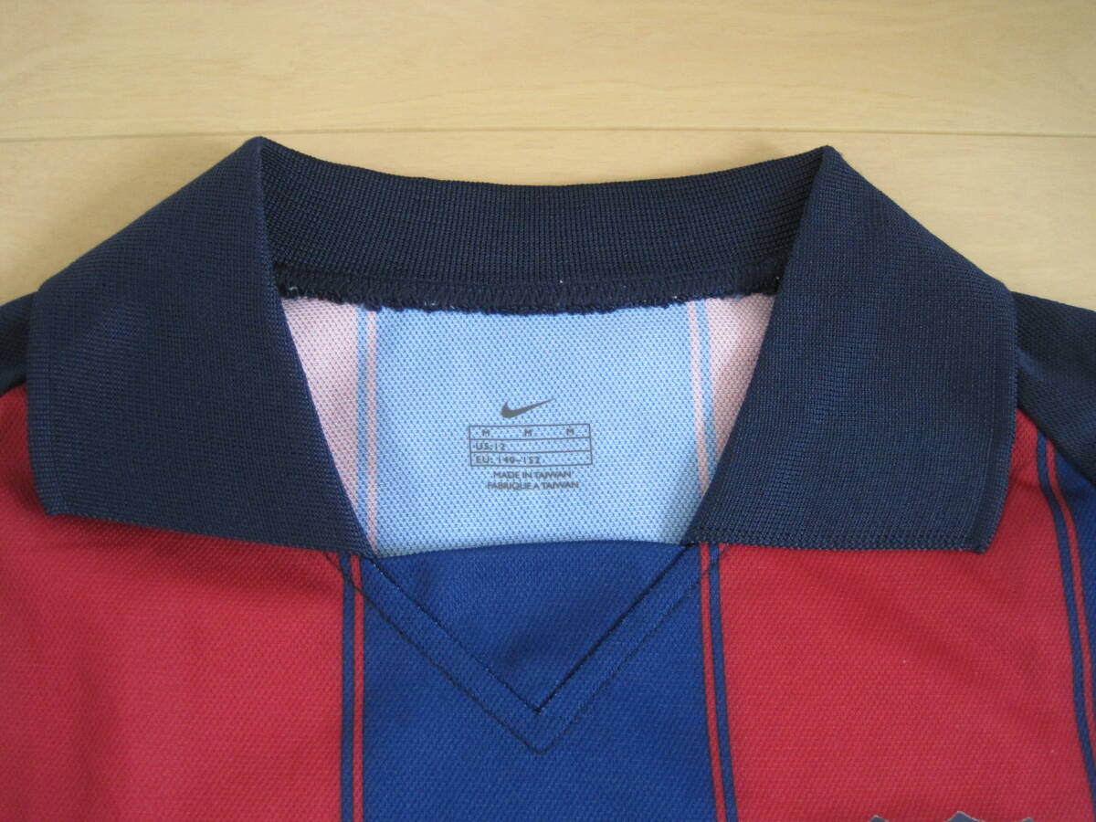 キッズサイズ NIKEナイキ FCバルセロナ ユニフォームになります。写真の様な瑕疵がありますが、それ以外に特に目立つ傷、汚れはありません。サイズはUS12 EU140-152、ポリエステル100%です。肩幅ラグランのため不明、袖丈32cm(肩まで)、身幅43cm、着丈59cmです。素人の採寸ですので若干の誤差、商品状態はご了承ください。 落札後は、ノークレーム、ノーリターン、ノーキャンセルでお願いします。 発送方法は定形外かレターパックです。ほかにも色々出品していますので良かったらご覧ください。