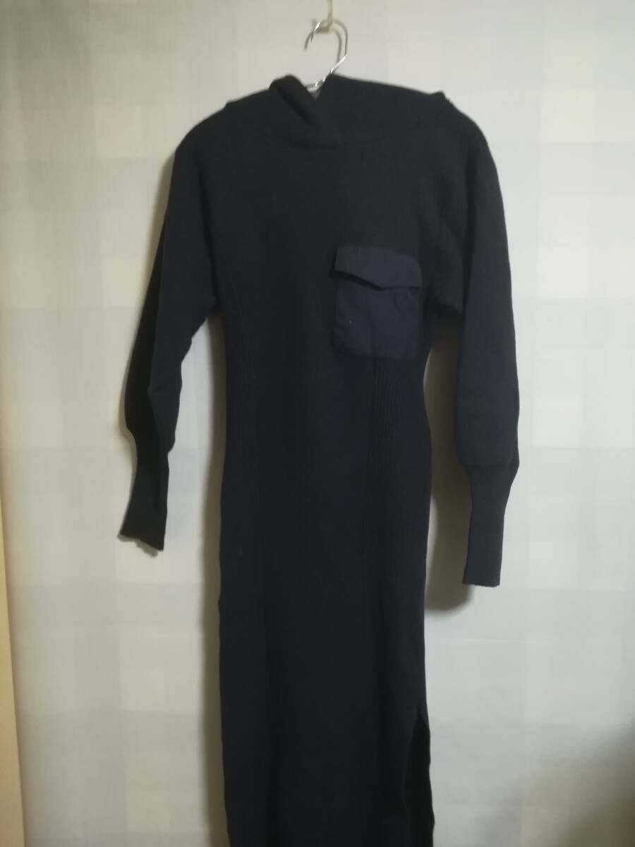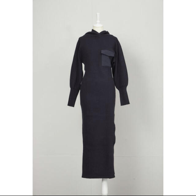 Rosarymoon フーディーニットドレス ワンピース ネイビー