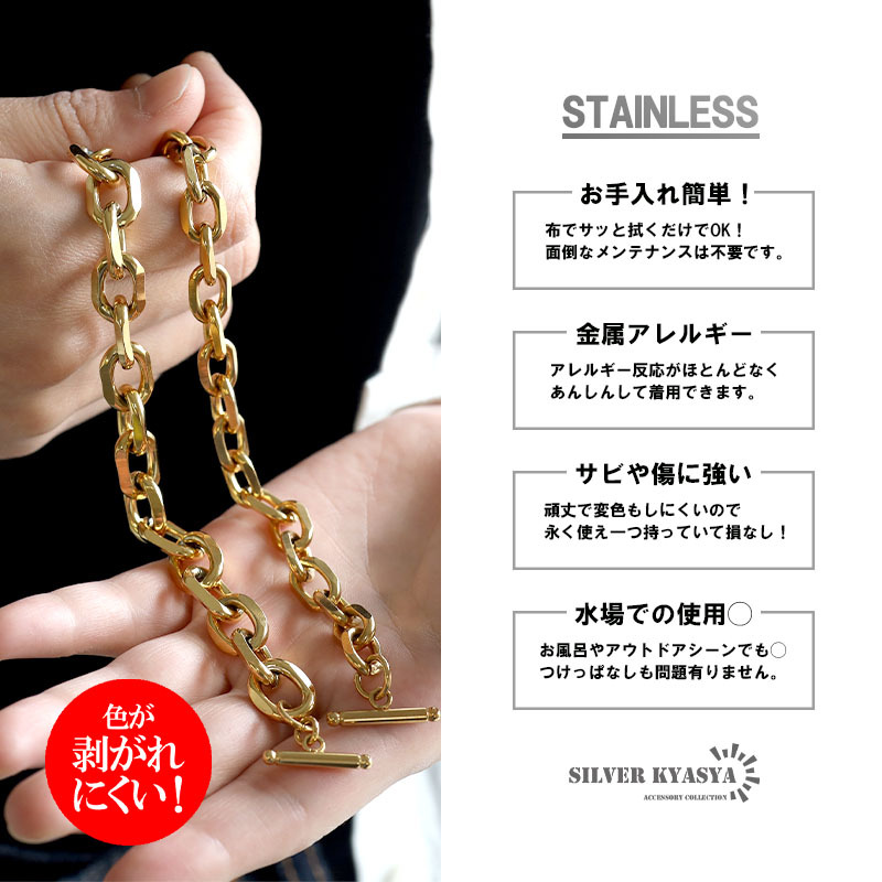 商品概要 | ■"使いまわし"ナンバーワンアクセサリー! どんなスタイル・ファッションにも合わせやすいシンプルなあずきタイプのチェーンブレスレット。留め具には着脱が簡単なマンテルタイプの留め具をセット。ボディのあずきチェーンには滑らかな4面カットが施してあり、ごつめながらもスタイリッシュなデザイン。メンズ・レディース問わずに使用できるデザインで、ペアアクセサリーやプレゼントやギフトにも活躍するアイテムです。 ■ステンレス素材を使用 ステンレス素材を使用しており、サビや変色がなく、金属アレルギーも出にくい仕上がり。 |