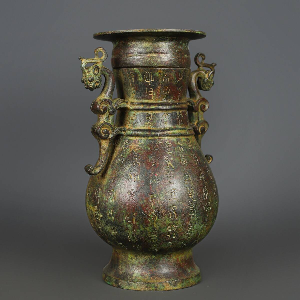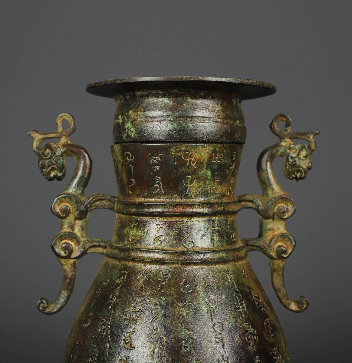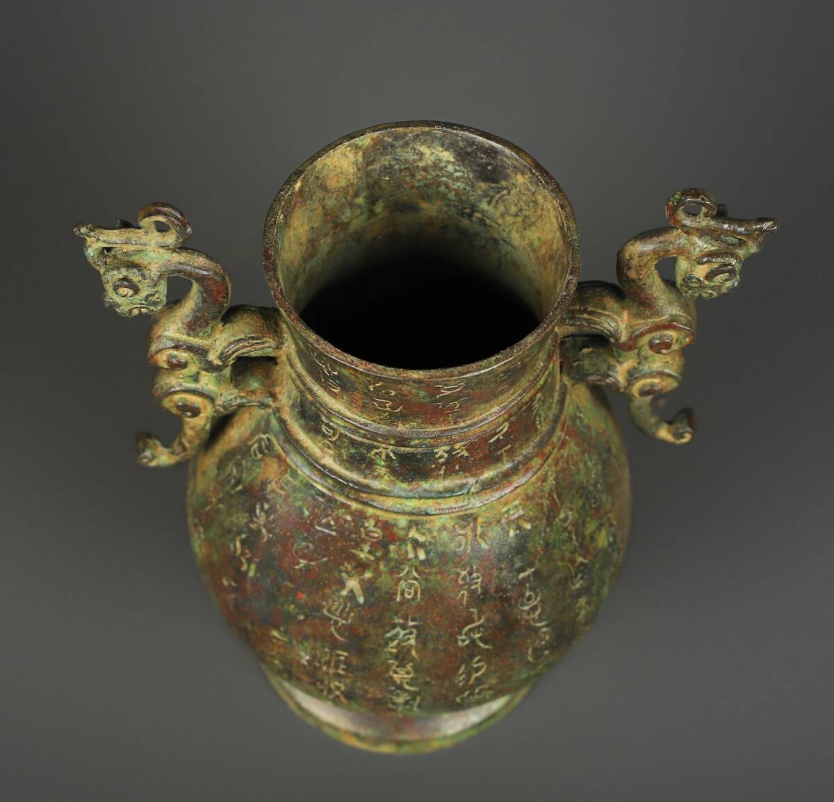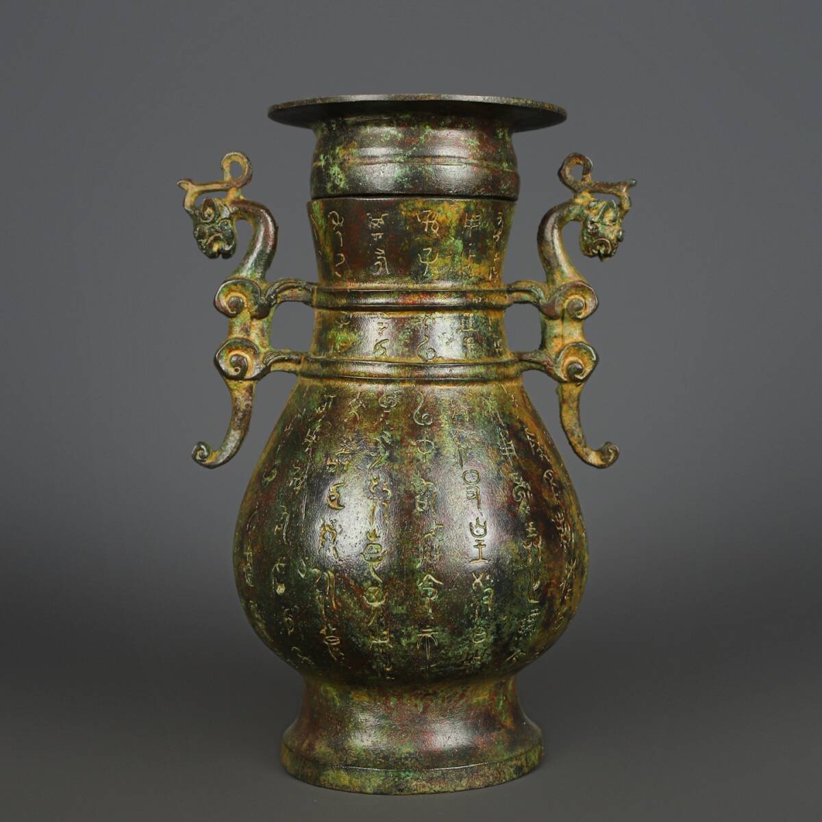 旧蔵 青銅器 中国商代の青銅文雙龍圓瓶 酒器 時代物 中國古美術 極細工 置物 賞物 唐物 S74