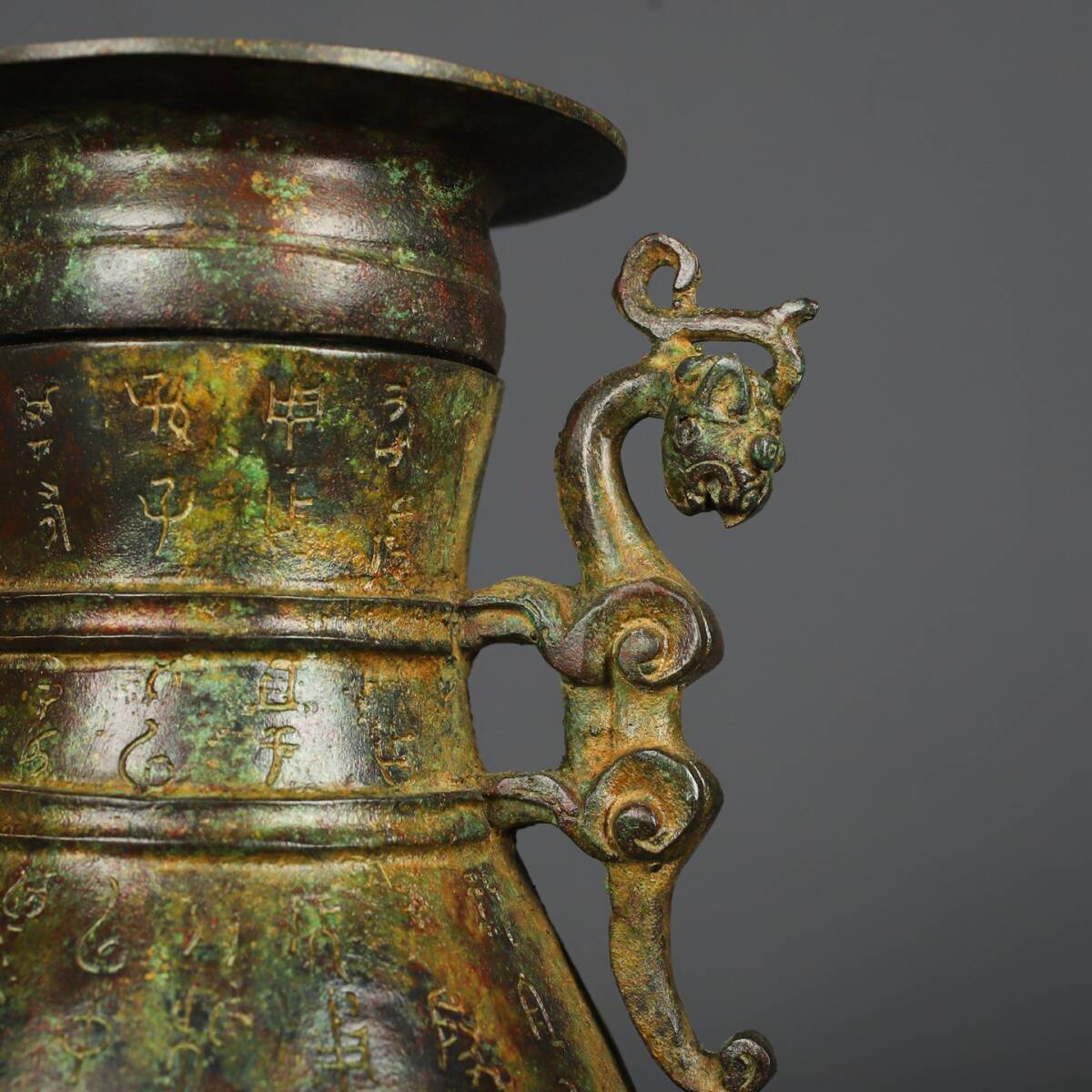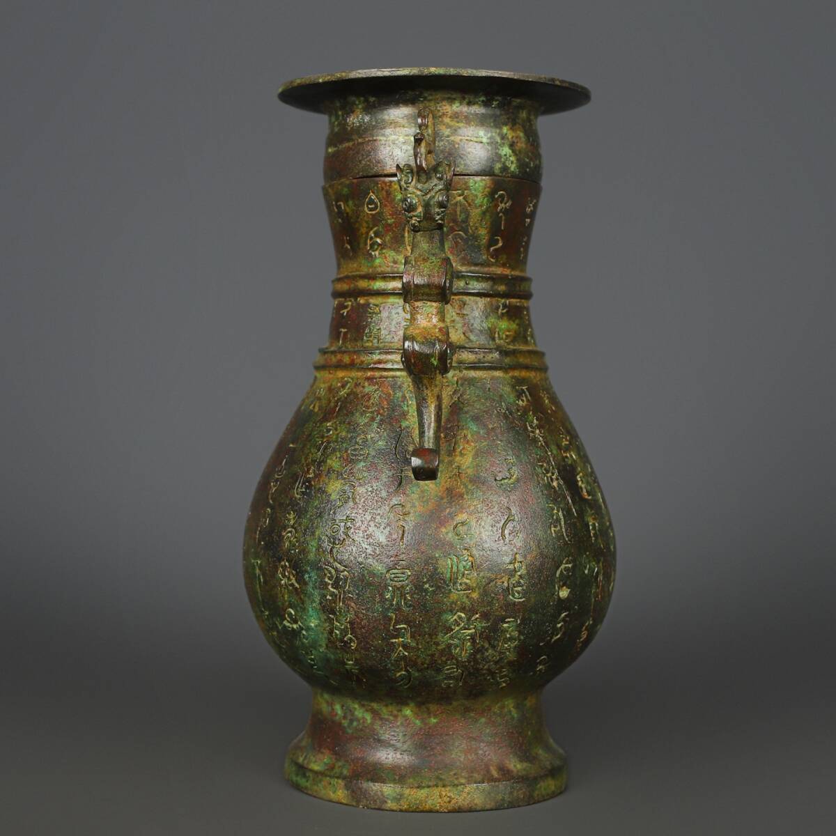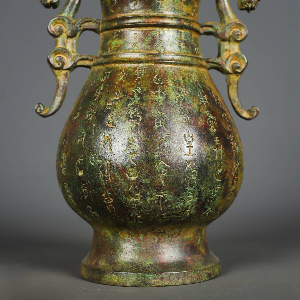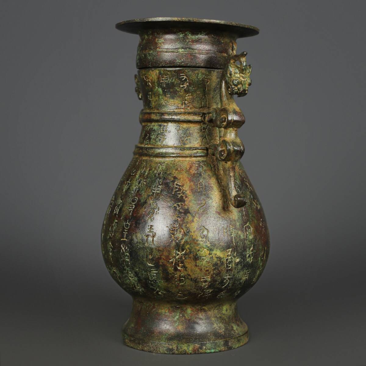 旧蔵 青銅器 中国商代の青銅文雙龍圓瓶 酒器 時代物 中國古美術 極細工 置物 賞物 唐物 S74